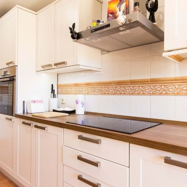 The apartment has been designed to fully enjoy both indoor and outdoor spaces. The living room and kitchen open directly onto a large terrace, extended by a pleasant private garden, a perfect space to relax, entertain guests or enjoy the regions exceptional climate.