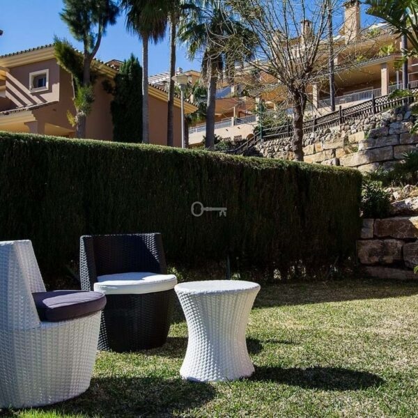 The gated community, set in a lush green environment, offers beautiful landscaped gardens, two swimming pools and a paddle tennis court. Several renowned golf courses are located nearby. The highly sought-after area of Elviria, with its restaurants, beaches and all amenities, is less than 10 minutes away by car.