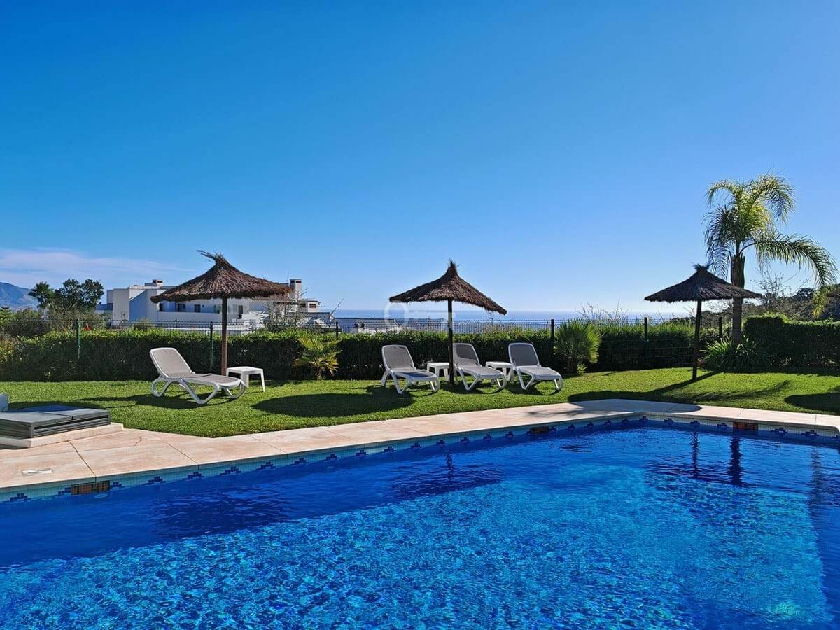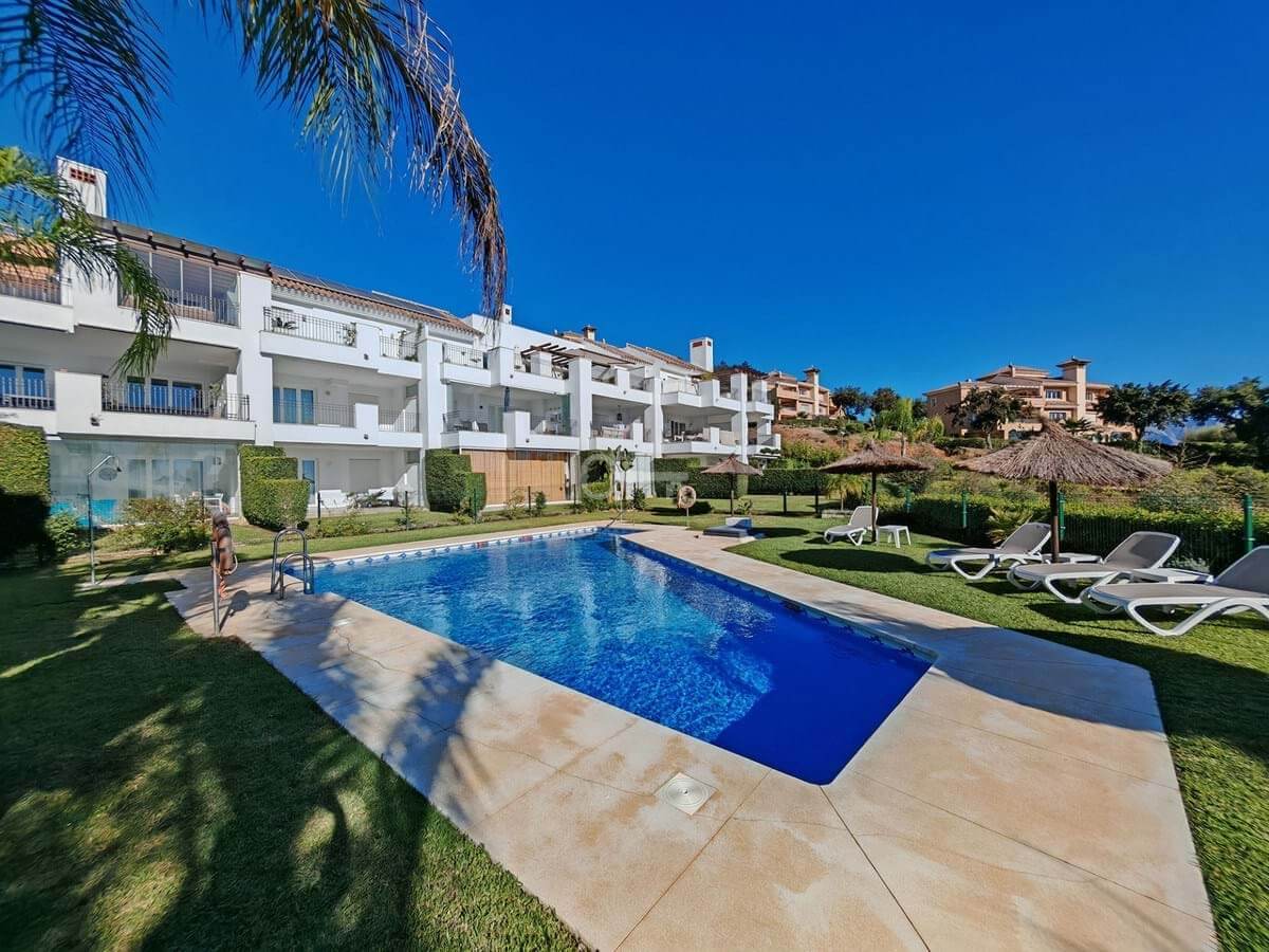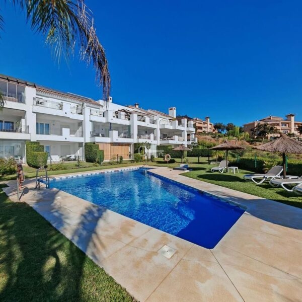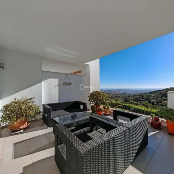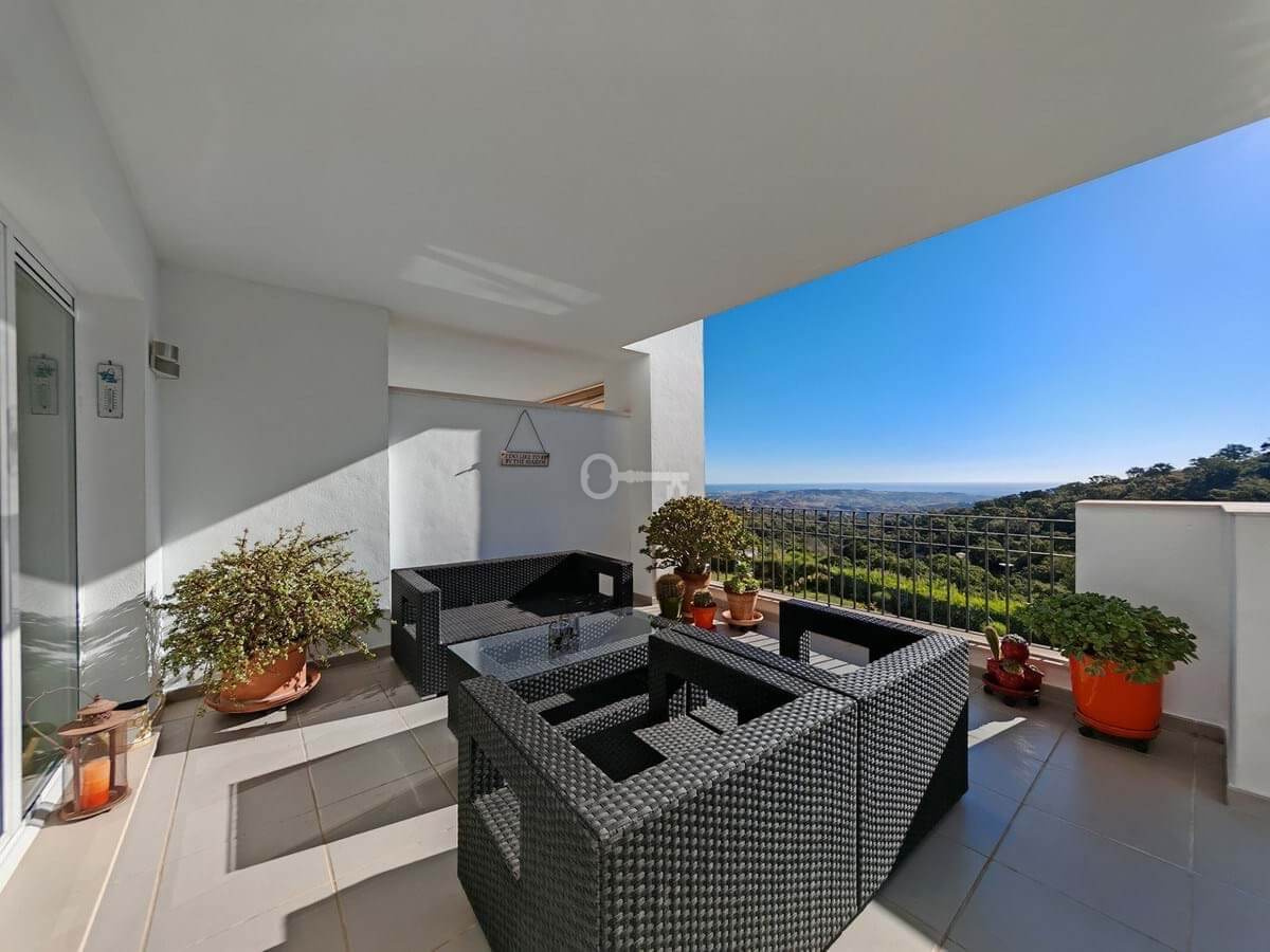 Apartment for sale in La Mairena, Marbella with 2 bedrooms, 2 bathrooms, 1 on suite bathroom and with orientation south/east, with communal swimming pool, private garage (1 parking spaces) and communal garden. Regarding property dimensions, it has 93.75 m² built and 29.65 m² terrace. Has the following facilities mountainside, air conditioning, fully furnished, fully fitted kitchen, utility room, gym, security entrance, double glazing, video entrance, private terrace, water tank, sea view, country view, mountain view, golf view, internet – wi-fi, covered terrace, fitted wardrobes, gated community, lift, garden view, panoramic view, uncovered terrace, balcony, spa, wheelchair-accessible and excellent condition.