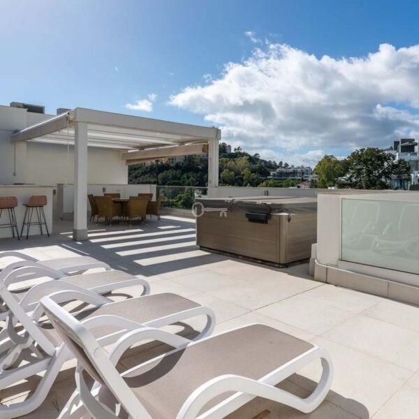Spacious and beautifully maintained three-bedroom penthouse situated in a sought-after residential complex overlooking the La Quinta golf course, just a short drive from the beaches, restaurants and amenities of Puerto Banús and San Pedro de Alcántara.