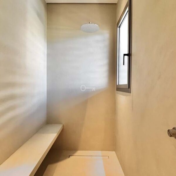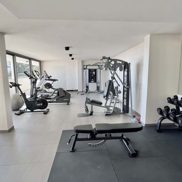 The apartment comprises 3 bedrooms and 2 bathrooms, featuring a spacious open-plan living and dining area with direct access to the large terrace, ideal for year-round outdoor living.