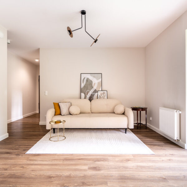 The apartment is finished in a refined, cozy and timeless style, using quality materials and Whirlpool appliances (refrigerator with freezer, induction hob, absorber, oven, large dishwasher).