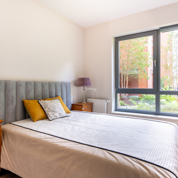 The bedroom, elegantly arranged, equipped with a modern wide, comfortable bed and beautiful stylish antiques, provides the perfect environment for relaxation and recovery.