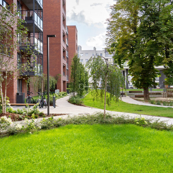 In the estate, impressive trees have been preserved, in addition, lush lawns and green paths have been created. The total number of new plants reaches more than 4,500, creating a friendly environment around the buildings. Among them, unique species that historically adorned the streets of Gdansk have been included.