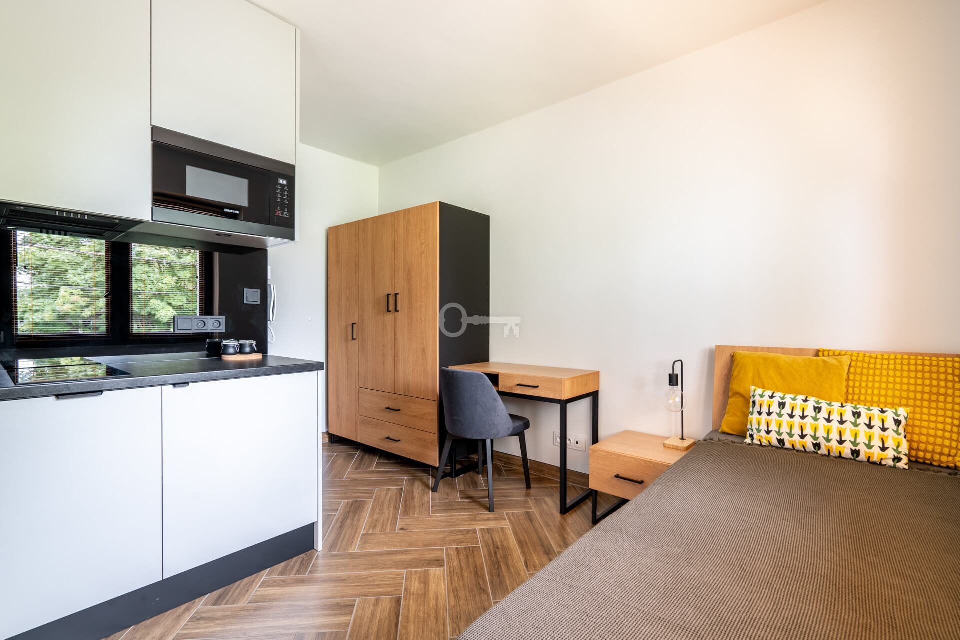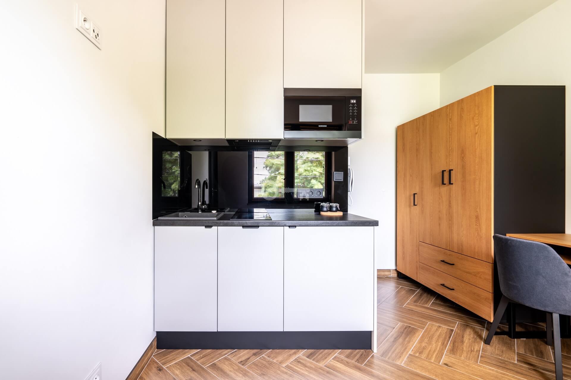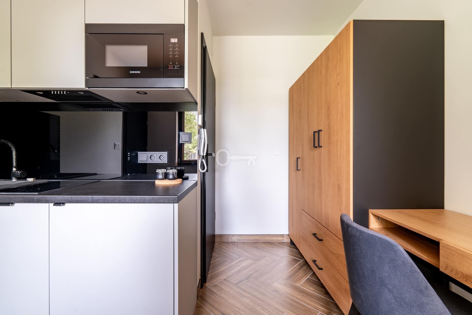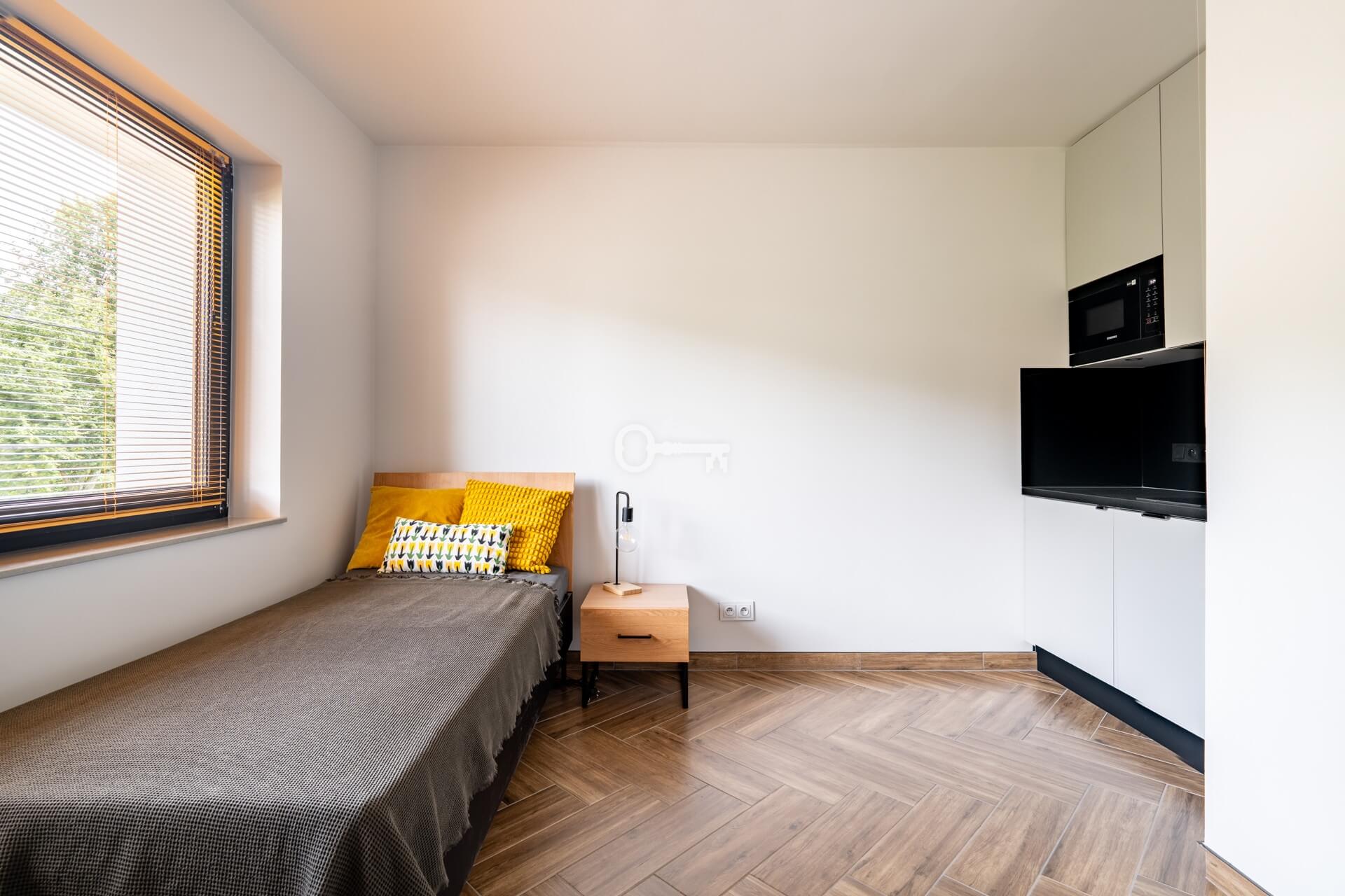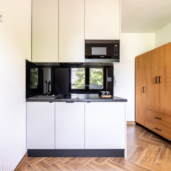 Each unit is a functional studio, where everything necessary for comfortable living has been arranged within a compact space: