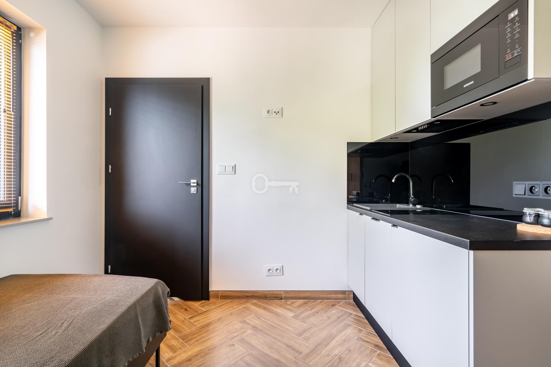 The apartments are furnished in a modern, Scandinavian style. Bright interiors, wooden floors, and large windows give them coziness and elegance.
