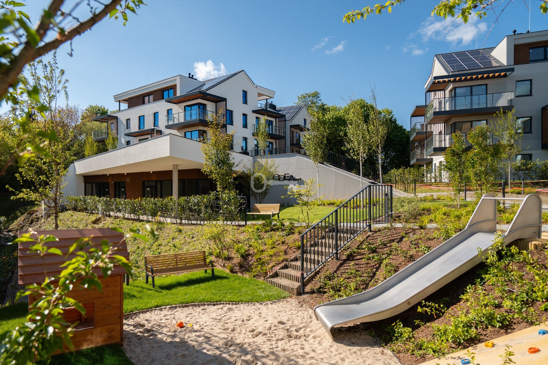 ODEA Park has been designed with comfort, sustainability, and a modern lifestyle in mind. The buildings are equipped with photovoltaic panels, green roofs, and eco-friendly building materials. The carefully designed common areas and numerous amenities further enhance the residents’ quality of life.