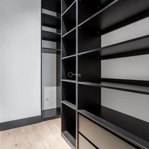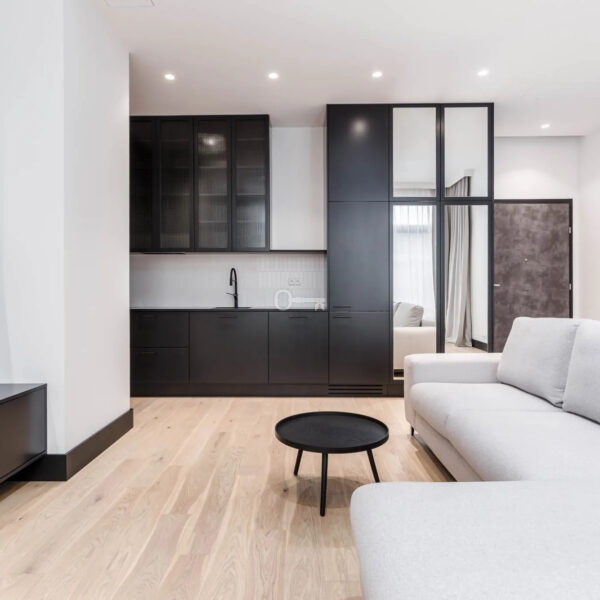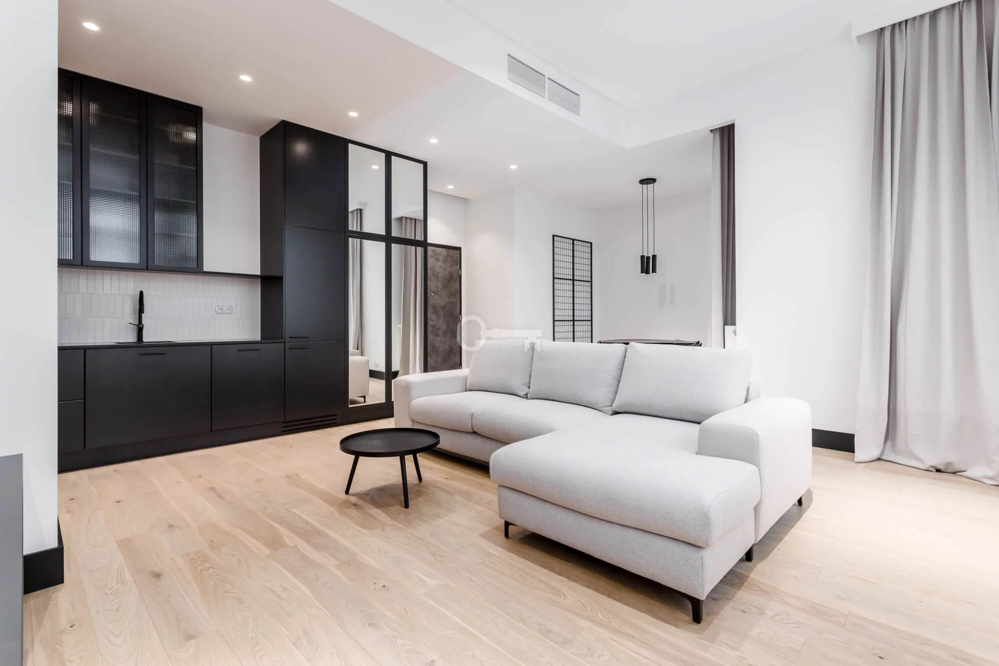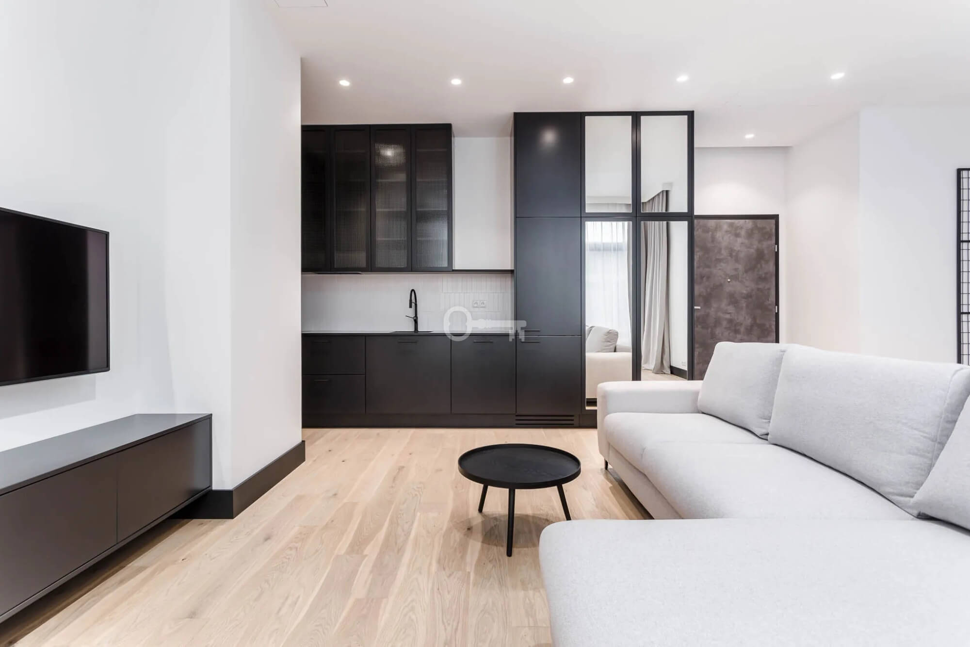 The loft-style interior is perfect for those who appreciate bold design. Industrial-style apartments are characterized by black and gray metal accents, natural wood, and often raw concrete or exposed brick, complemented by copper touches and wire mesh elements.