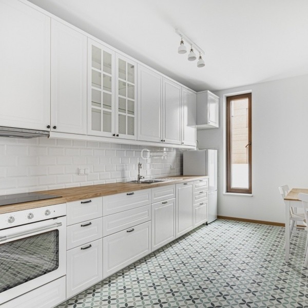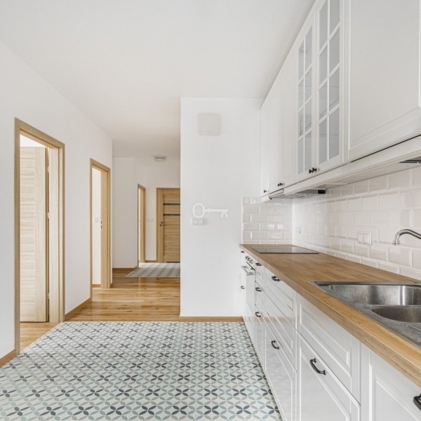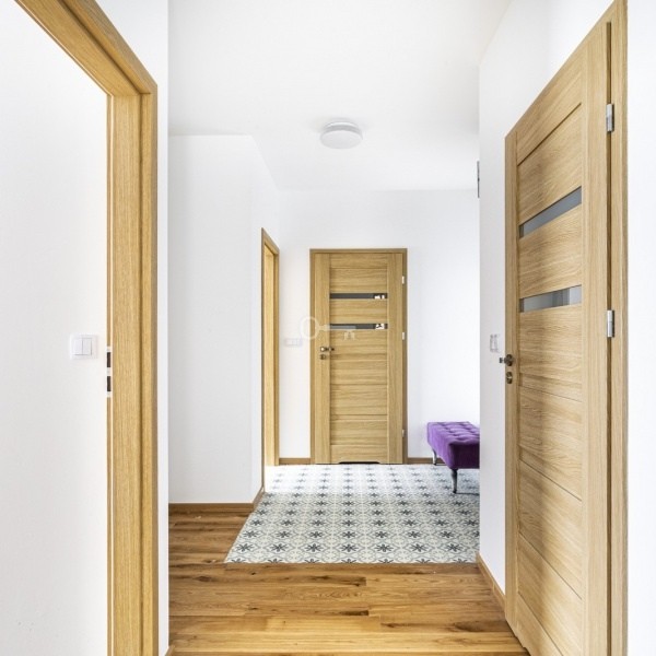 A characteristic feature of the apartment is its quite unusual and nice layout. The apartment has something like an enfilade, associated more with tenement houses. In result, there is a very large and comfortable kitchen. The living room, as well as two more rooms, are accessible from the corridor along with bathrooms.