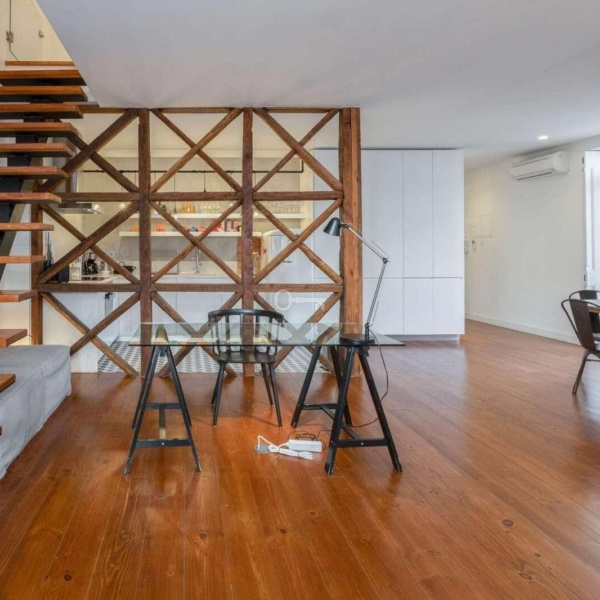 With plenty of charm and a premium decoration, it is sold fully furnished and decorated, ready to live in. This apartment keeps the original epochal Pombaline draft, highlighting the St. Andrew´s Cross in the living room and other details of stonework and flooring, among others.