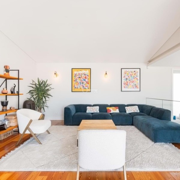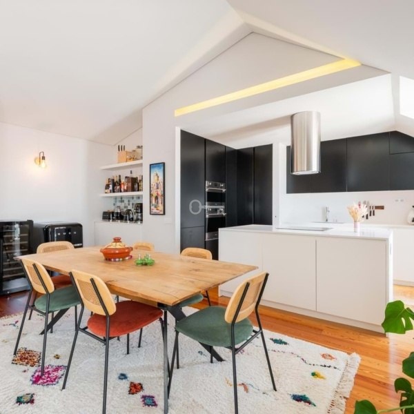 Exceptional 3-bedroom duplex penthouse apartment (originally a 4-bedroom) is set within a recently built development that preserves Lisbons traditional architectural character, located on a quiet pedestrian street between Chiado and Príncipe Real.