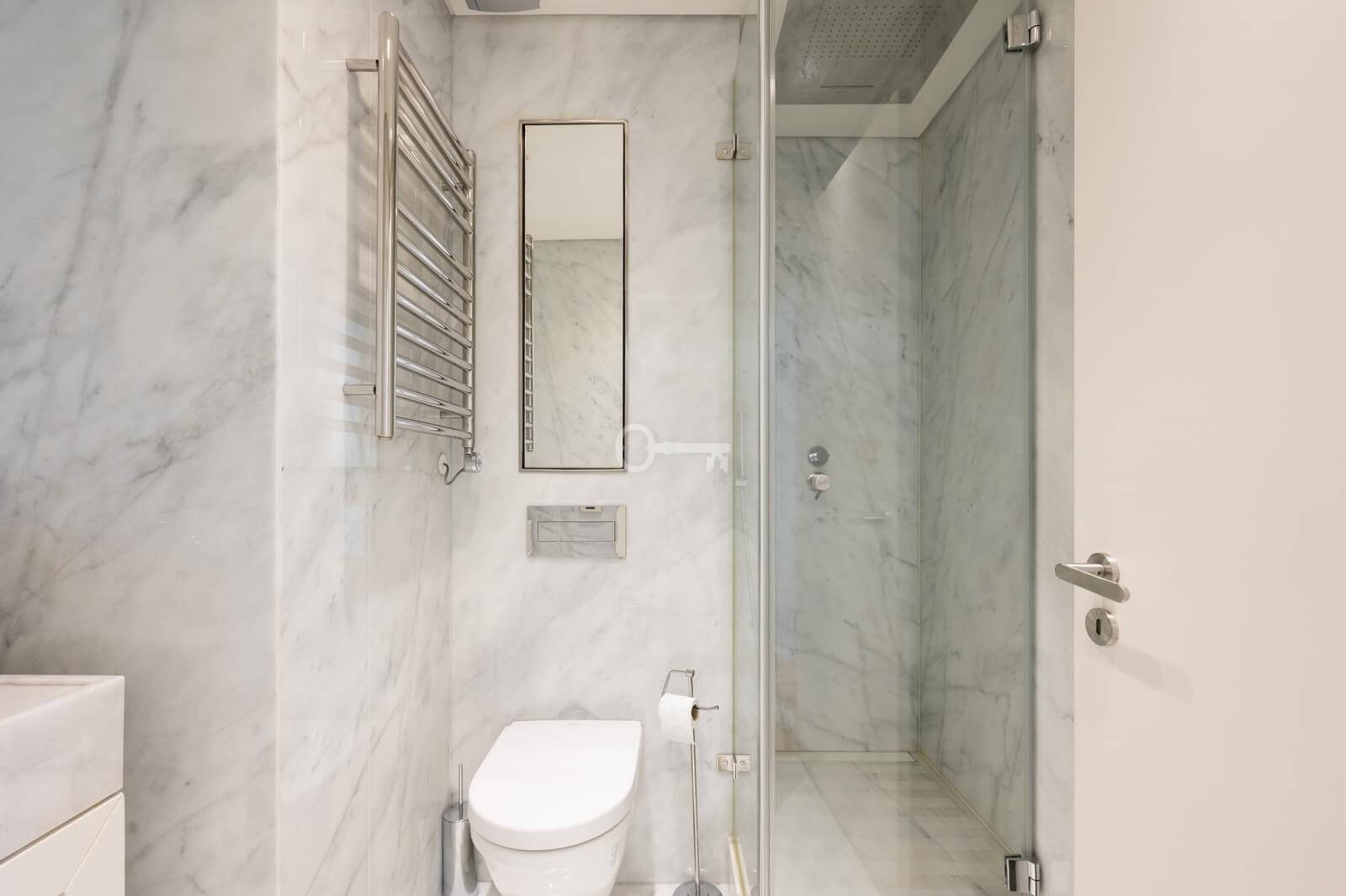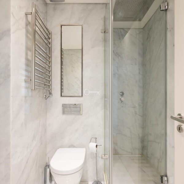 The apartment benefits from underfloor heating, air conditioning, alarm system and full home automation. Direct lift access leads to the penthouse and private garage, including three parking spaces and a storage room.