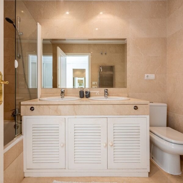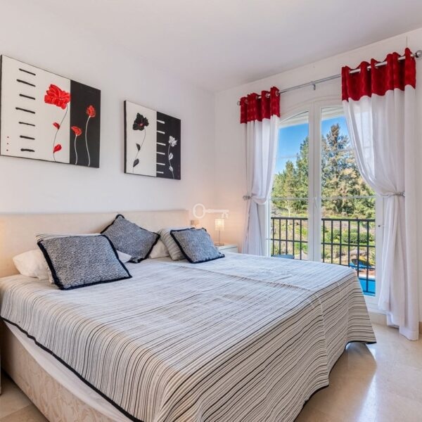 Los Eucaliptos is a beautifully maintained community featuring landscaped gardens and two communal swimming pools, creating a relaxed and harmonious environment. The property also includes a private parking space and a storage room in the underground garage.