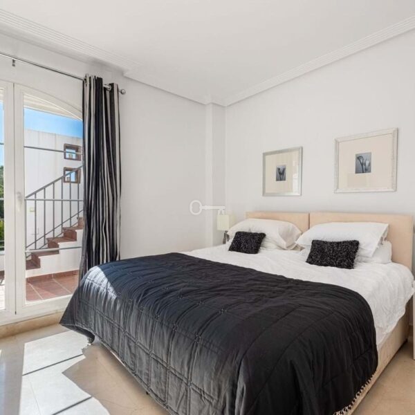 The apartment offers three generous bedrooms, including a master suite with en-suite bathroom and direct access to the terrace, providing an added touch of comfort and privacy.