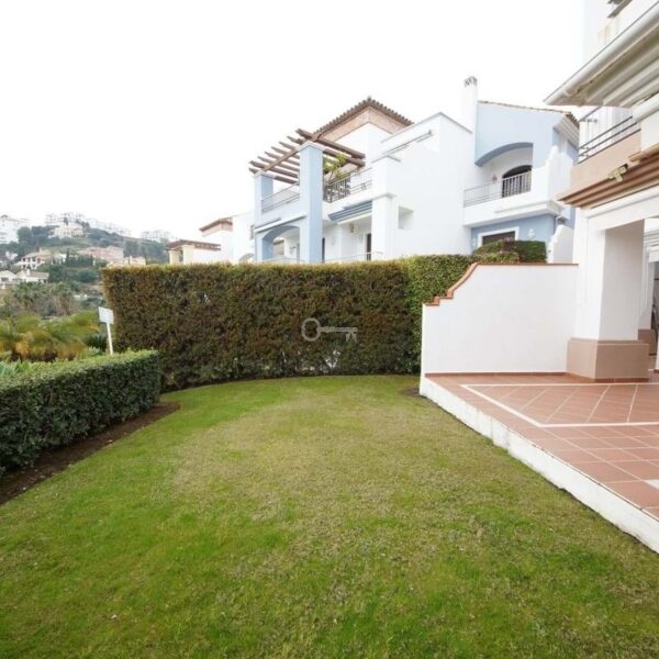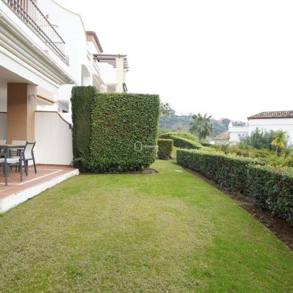 A magnificent ground floor apartment is offered for sale within a well-maintained and quiet residential complex, surrounded by landscaped gardens and with open views of a green golf course/valley setting. It stands out for its combination of comfort, spaciousness, and private outdoor area: a large terrace with a dining area and a private garden, ideal for enjoying the Costa del Sol climate year-round.
