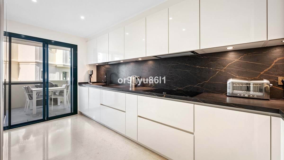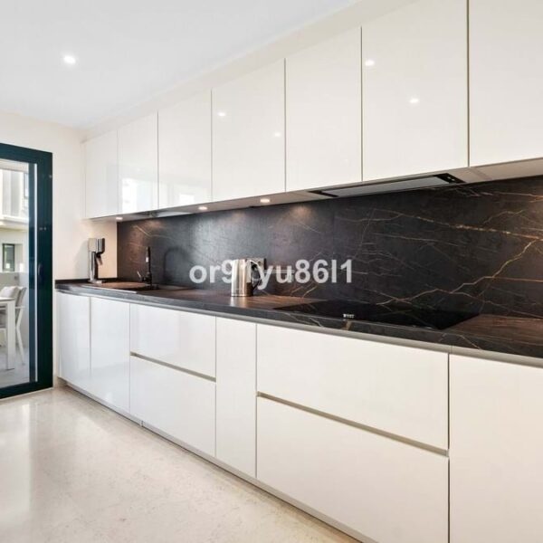 The kitchen is independent and highly functional, with direct access to its own covered terrace, while multiple terraces throughout the apartment ensure that all main living and sleeping areas enjoy direct outdoor access, enhancing privacy and connection to the surrounding greenery.