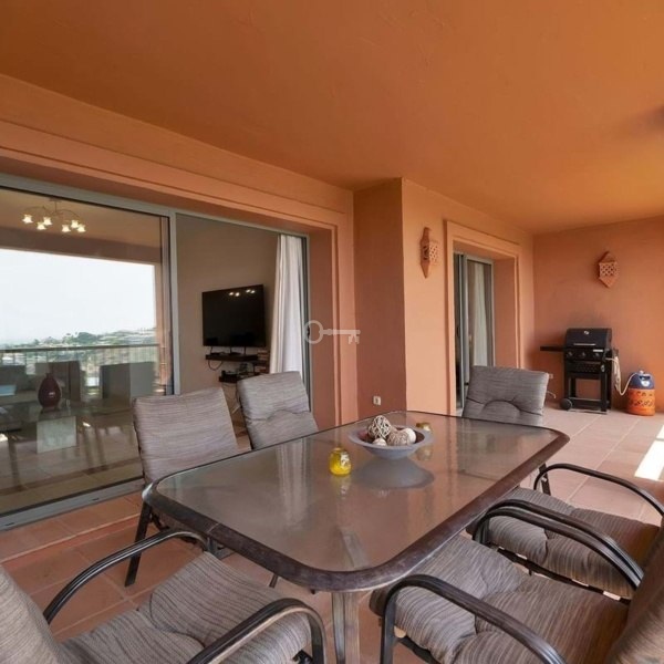 Situated on the first floor and flooded with natural light, the apartment features a spacious layout, a fully fitted kitchen, and a large private terrace with panoramic views of the golf course, sea, and mountainsa rare combination that makes it especially attractive to second home owners and holidaymakers alike.