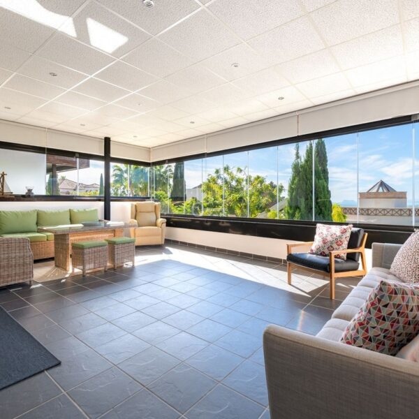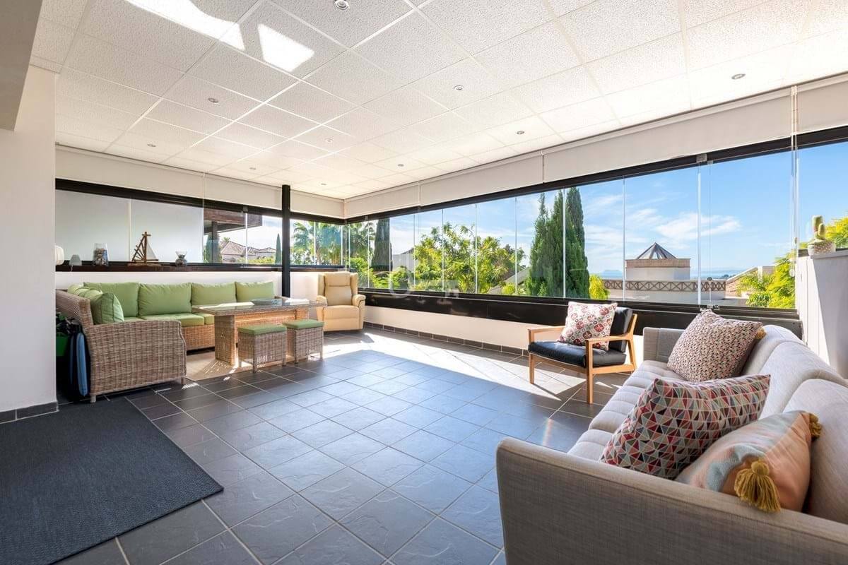 One of the standout features is the large 36.56 m² covered terrace, perfect for relaxing or entertaining while enjoying partial sea views and the peaceful surroundings.