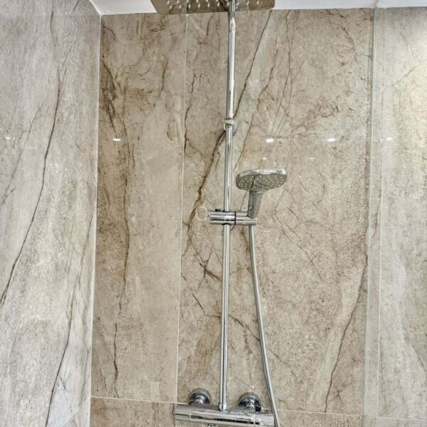 Air conditioning (hot/cold) and elegant marble infrared heating panels mounted on the wall