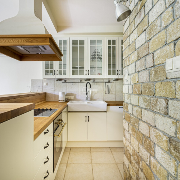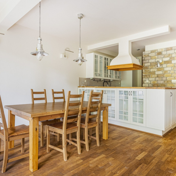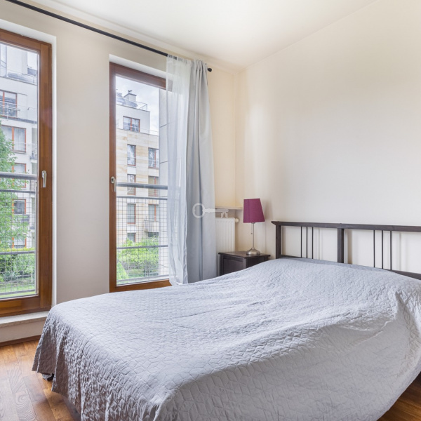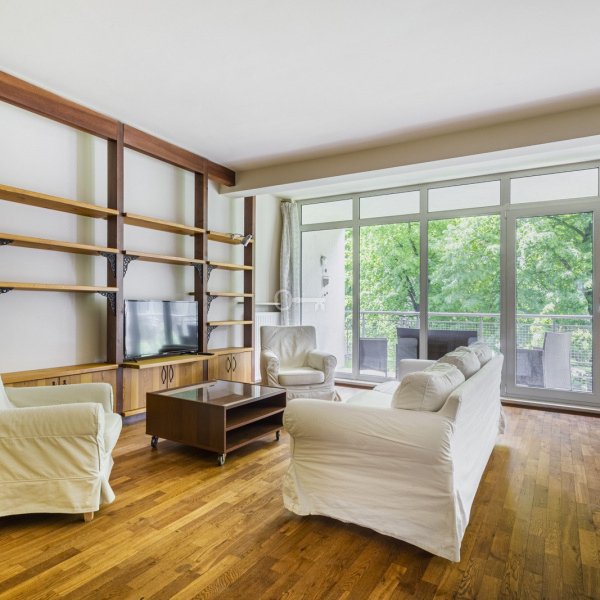 A comfortable apartment with an area of 100 m2 is located on the first floor of a 4-storey, intimate apartment building in a great location in Old Mokotów. The property is finished to a minimalist, Mediterranean style and consists of a spacious living room with an open kitchen, a separate study, two bedrooms and two bathrooms with a bathtub and shower, as well as a loggia. The apartment is furnished and fully equipped.
