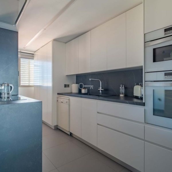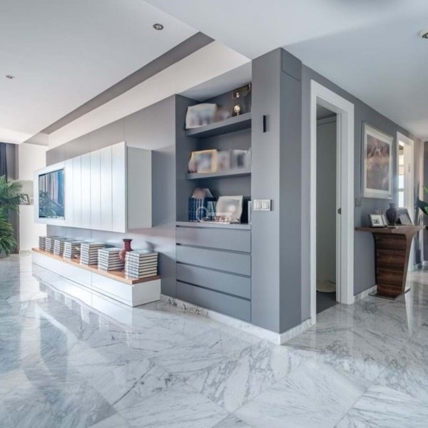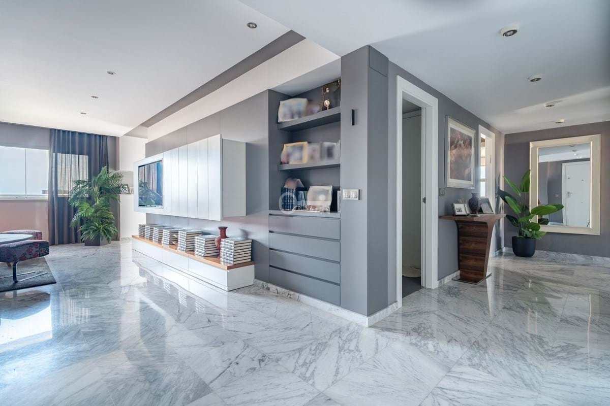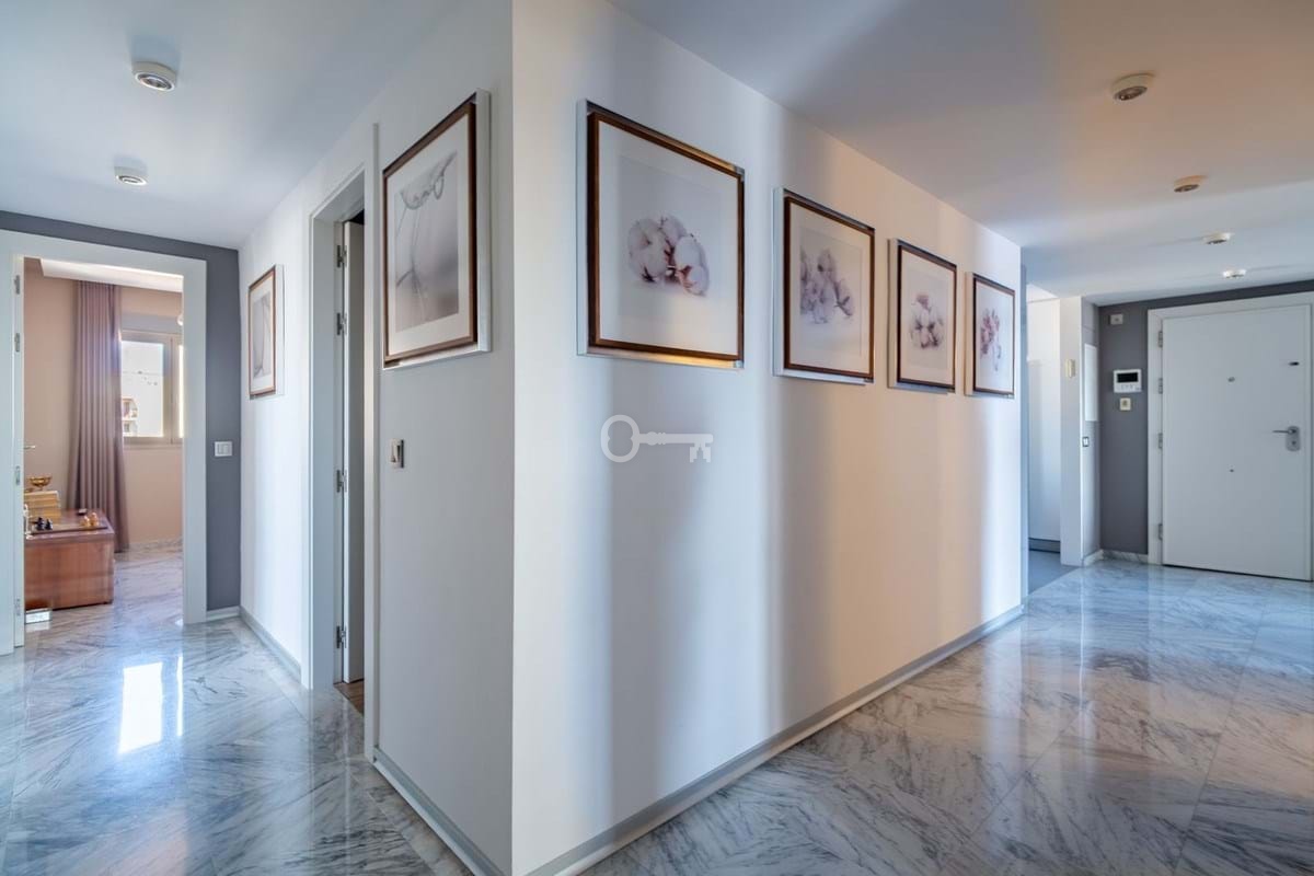 The penthouse has been designed with top-of-the-range materials and finishes: marble floors, white lacquered doors, indirect ambient lighting, walls decorated with exclusive coverings, exterior aluminium carpentry with Climalit double glazing for excellent thermal and acoustic insulation.