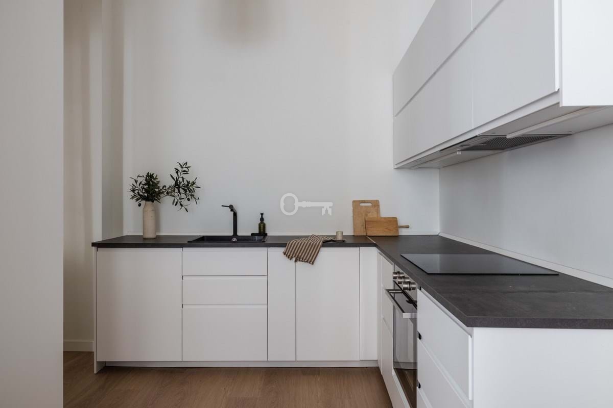 The property has been brought up to modern day standards with three large double bedrooms, an open living and modern kitchen plus one bathroom plus a separate toilet cloakroom. The bright living area and open plan kitchen have been modernised to a high level with an exposed brick wall and new sound proof windows replicating the original to the front street with three small balconies. The stunning 3.5 m high ceiling gives an open feeling throughout the entire apartment. A new lift, installed in 2024, opens directly into the apartment operated by an individual key, giving a feeling of luxury and exclusivity.
