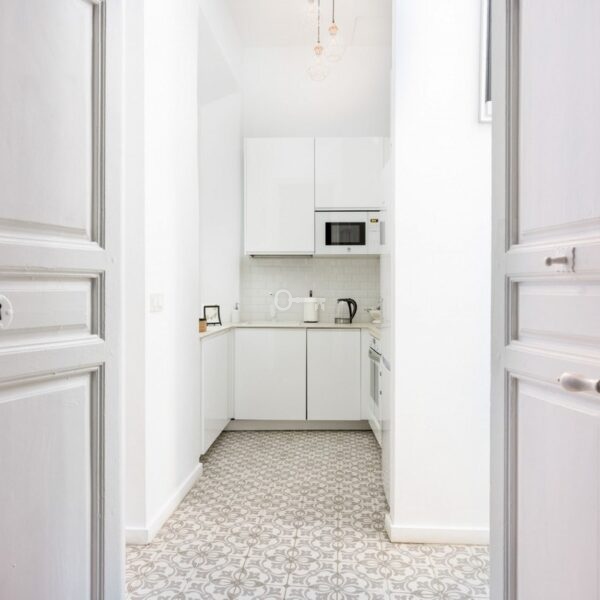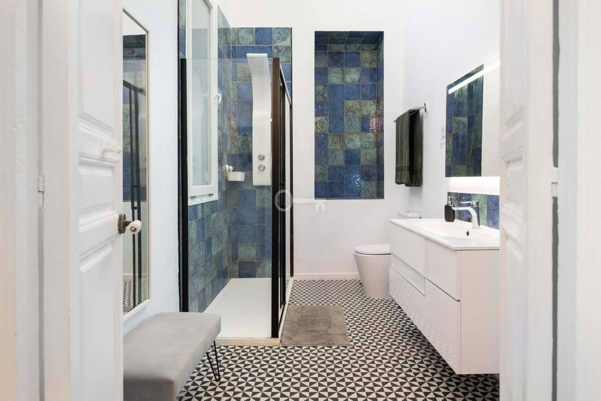 Impressive 4.2-meter-high ceilings with exposed beams, 3-meter doors, and original 19th-century tiles anchor a high-end renovation that honours the buildings heritage while enhancing everyday comfort. The spa-style bathrooms offer generous dimensions and rain-effect showers; central air conditioning serves the entire residence. The versatile layout allows for an independent studio or three-bedroom apartment. At the moment, it’s functioning as an Airbnb, making this ideal for guests or additional income as a short-term rental.