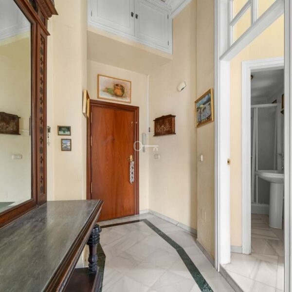 The apartment preserves the stately character typical of historic city-centre buildings, with ceilings over three metres high that provide a remarkable sense of space, elegance, and openness. The abundant natural light, combined with its south-facing orientation, creates bright, airy, and welcoming living spaces throughout the day.