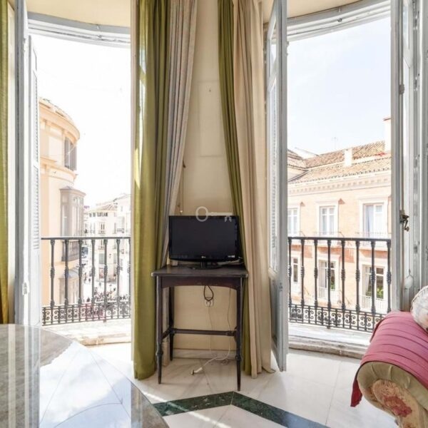 Situated on a corner, the property stands out for its extraordinary brightness, thanks to seven balconies wrapping around the home, offering privileged views over the elegant Marqués de Larios Street and a side glimpse of the majestic Málaga Cathedral, one of the citys most iconic landmarks.