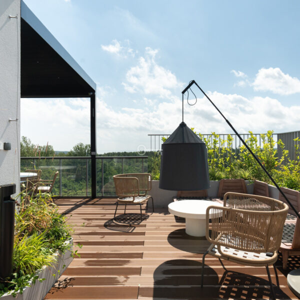 All units are almost 280 cm high, and are well soundproofed thanks to triple-glazed wooden windows. Some of the loggias and terraces have additional folding glazing, so we can enjoy the terrace space practically all year round.