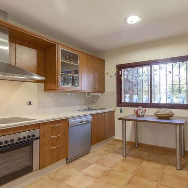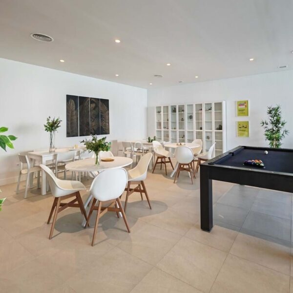 The bright and spacious livingdining area opens directly onto a large private terrace, approximately 50% covered, creating the perfect setting for al fresco dining, relaxing, and enjoying the Mediterranean climate all year round.