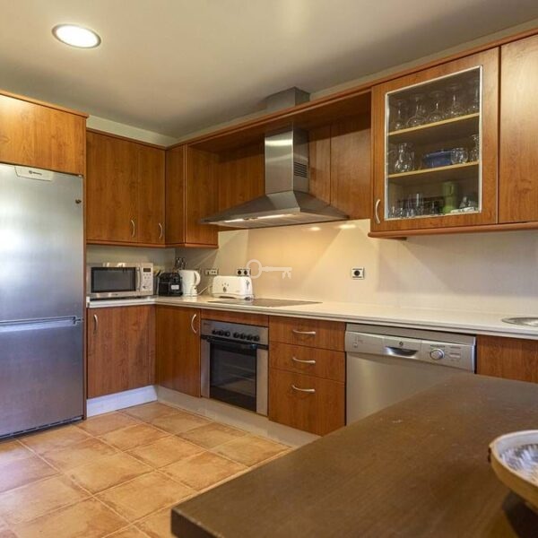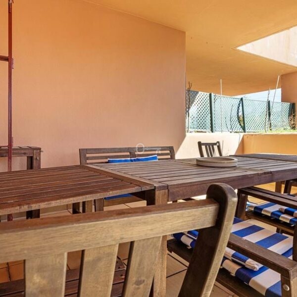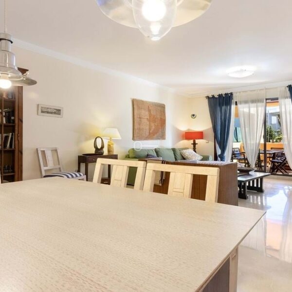 The apartment comprises three double bedrooms, including a principal suite with direct terrace access, a walk-in wardrobe, and an en-suite bathroom. A fully fitted kitchen, a second bathroom, and a guest toilet complete the interior layout. Its ground floor position ensures both convenience and easy access, making it ideal as a permanent residence or a holiday retreat.