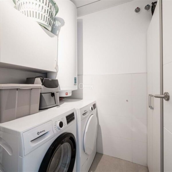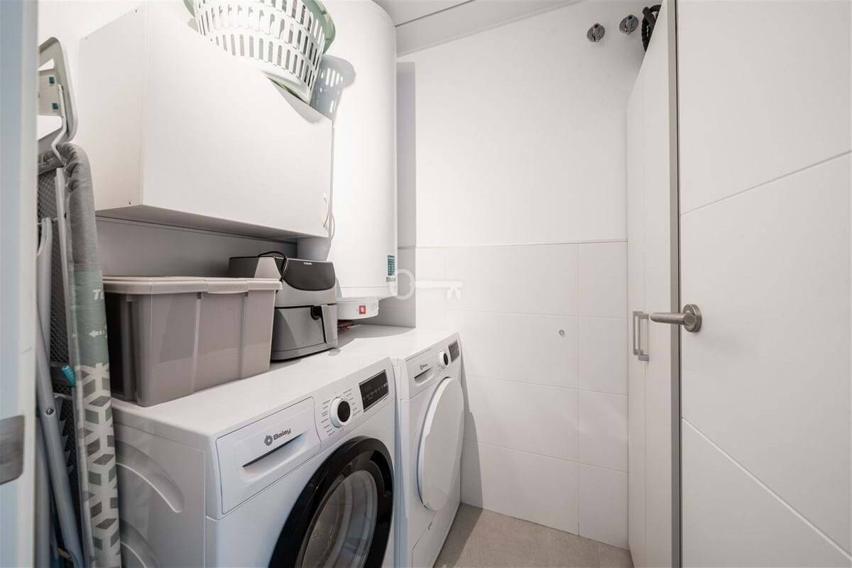 Both bedrooms are well proportioned, featuring extensive fitted wardrobes and direct access to the terrace, with the master bedroom benefiting from an en suite bathroom. A second bathroom, separate laundry with storage area add to the practicality of the home. High quality finishes, air conditioning for heating and cooling, and a continuous air circulation system ensure comfort in every season.