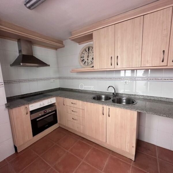 Entrance hall with a spacious and bright kitchen on the right. Laundry area.