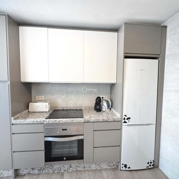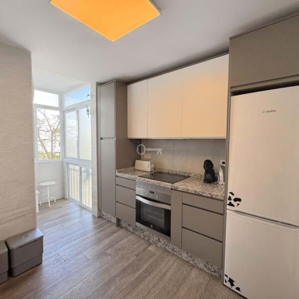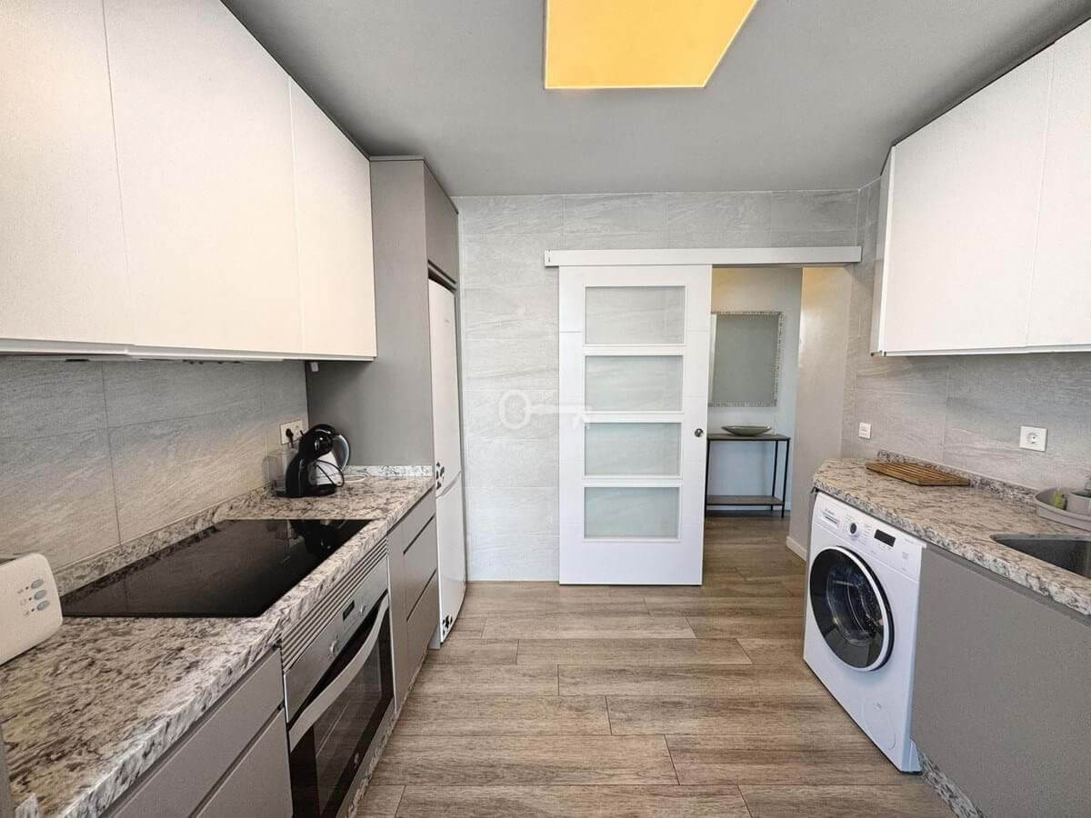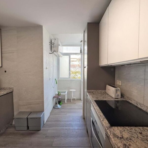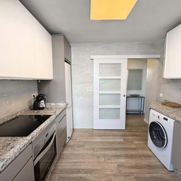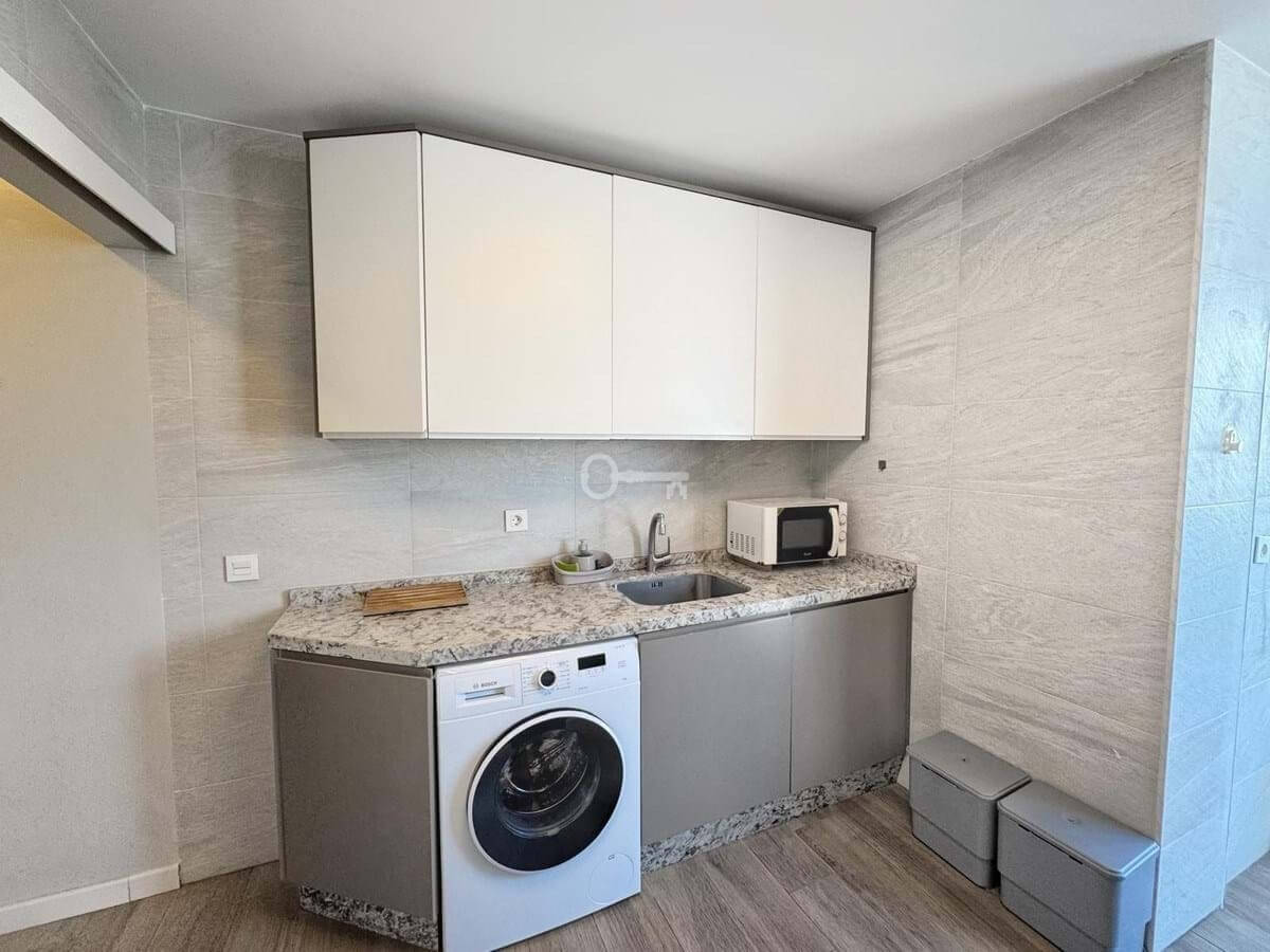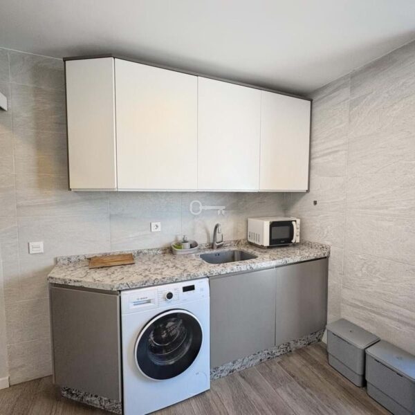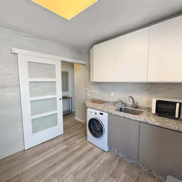 The kitchen is independent, fully equipped, and also includes a practical laundry area. The apartment has been renovated in a contemporary style, offering a modern and welcoming atmosphere.