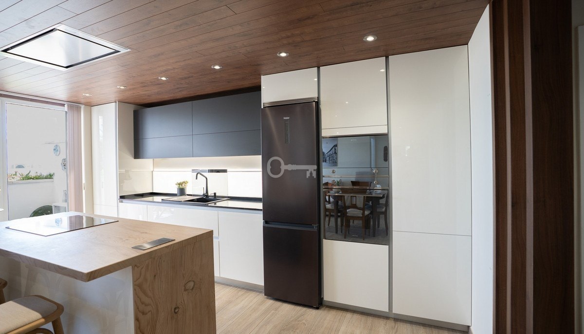 Offering 92m² of well-planned living space, the apartment features a bright open-plan living and dining area connected to a fully equipped kitchen. Recently renovated, it comes in excellent condition with high-quality finishes and tasteful furnishings. Fitted wardrobes offer practical storage, while an additional storage room adds further convenience.