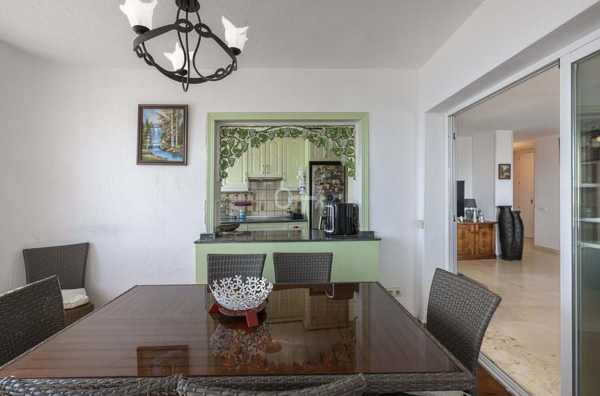 The bright and generous living room opens directly onto a private terrace, the perfect setting for enjoying a quiet breakfast at sunrise or a romantic dinner at sunset, with the sea as your constant companion.