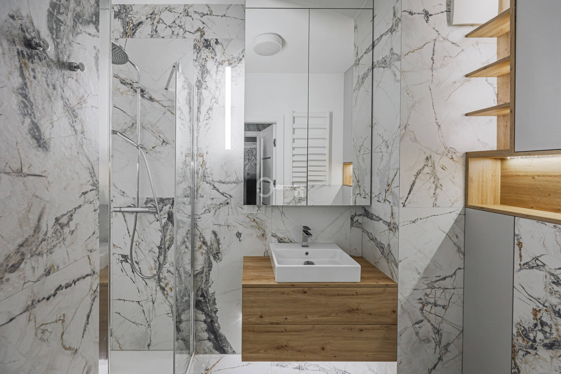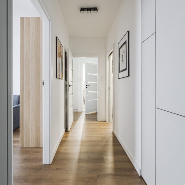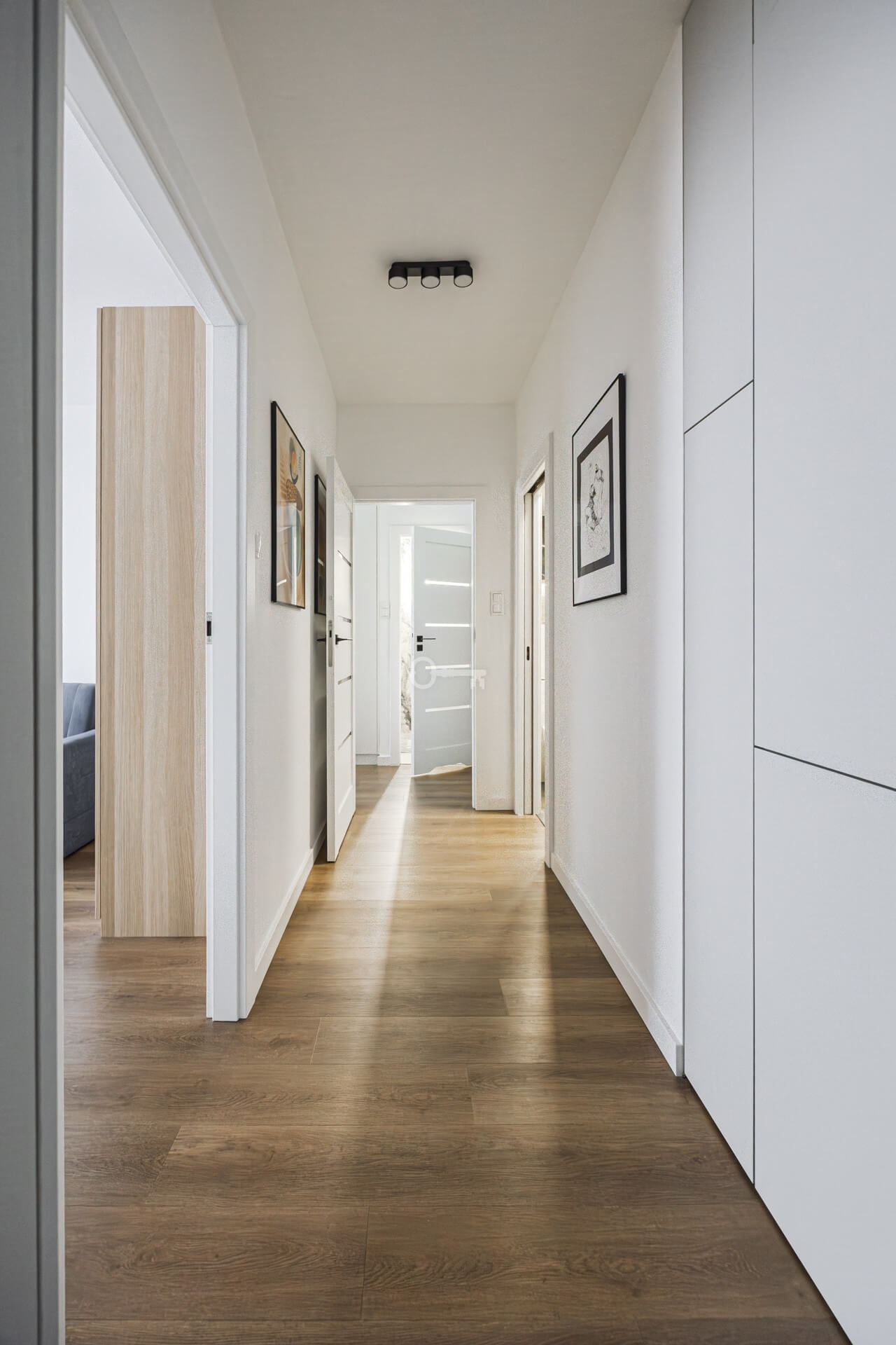 The layout is completed by a hallway with extensive custom-made built-in wardrobes.