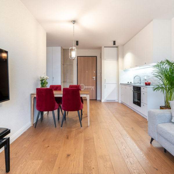 A huge advantage of this development is its location and access to a plethora of restaurants and cafes. You can enjoy their benefits, and it’s just as well to spend time picnicking on the grass-covered grounds. There are also beauty salons, a hairdresser, a dentist, grocery stores nearby – in other words, everything you need for daily life. One of the largest shopping malls, the Baltic Gallery, is just a few minutes’ walk away. Nearby is also a center with furniture of various brands – City Meble. The Old Town of Gdansk, or the pier and beach in Gdansk Brzeźno need only a dozen minutes by car, although you can get there just as well by bike or public transport. The central location is a guarantee of proximity to the main artery of Gdansk, streetcar stops, bus stops, SKM light rail, station in Gdansk Wrzeszcz.