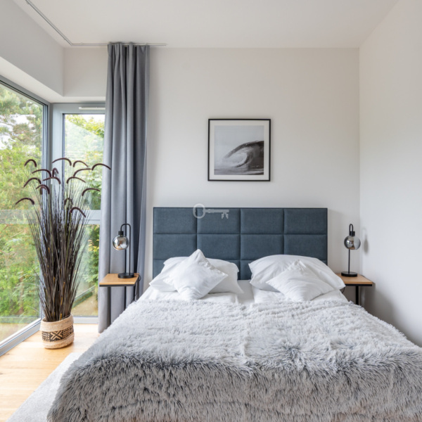 The building has four floors and was designed in a modern, modernist style, equipped with quiet elevators and an underground garage hall. The building features 29 unique turnkey apartments with different areas, ranging from 47.37 sqm to 105.15 sqm. Thanks to the panoramic windows, you can enjoy a beautiful view of the sea from each apartment and enjoy the natural light streaming in.