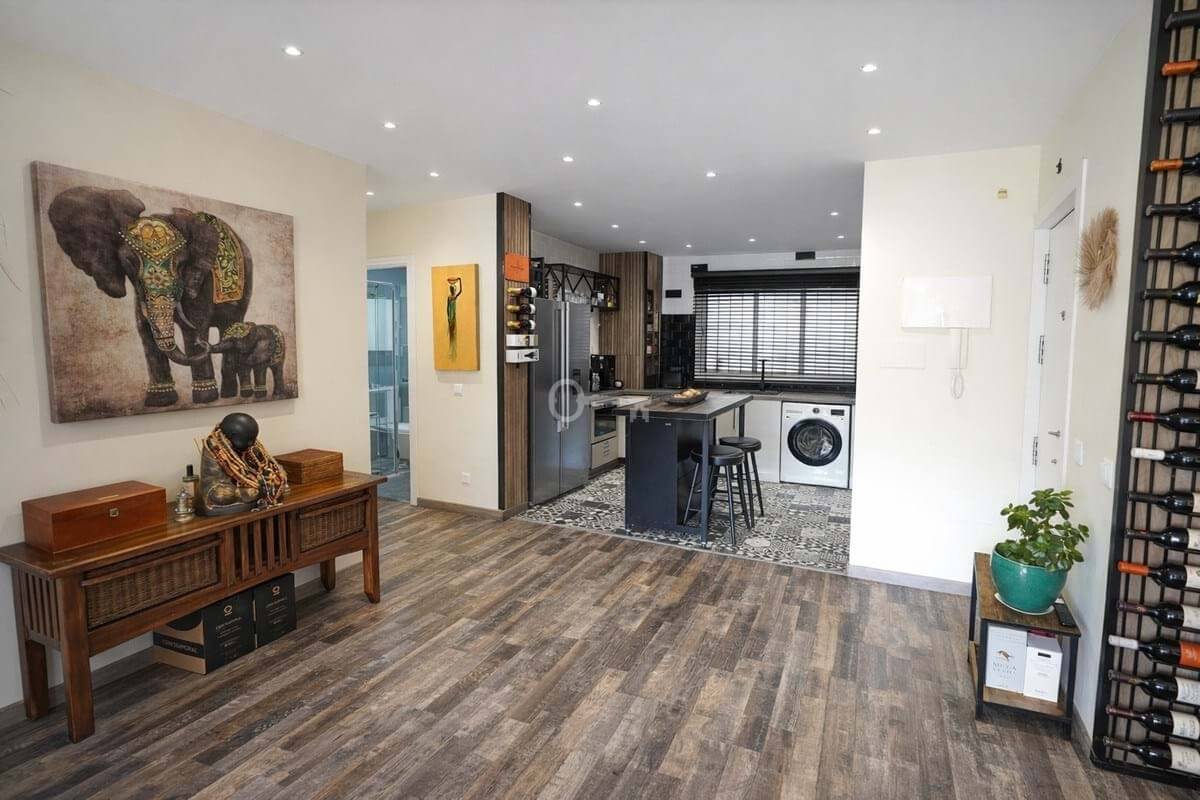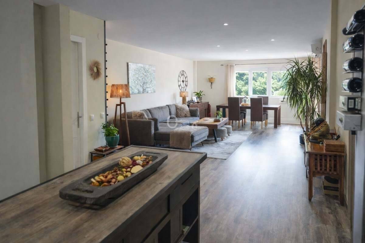 The interior of the apartment is thoughtfully designed, featuring a spacious living room and a dedicated dining area, both furnished to a high standard. The fully fitted and equipped kitchen caters to culinary enthusiasts, while air conditioning and central heating ensure year-round comfort. Fitted wardrobes provide ample storage, and the overall layout maximises both functionality and elegance.