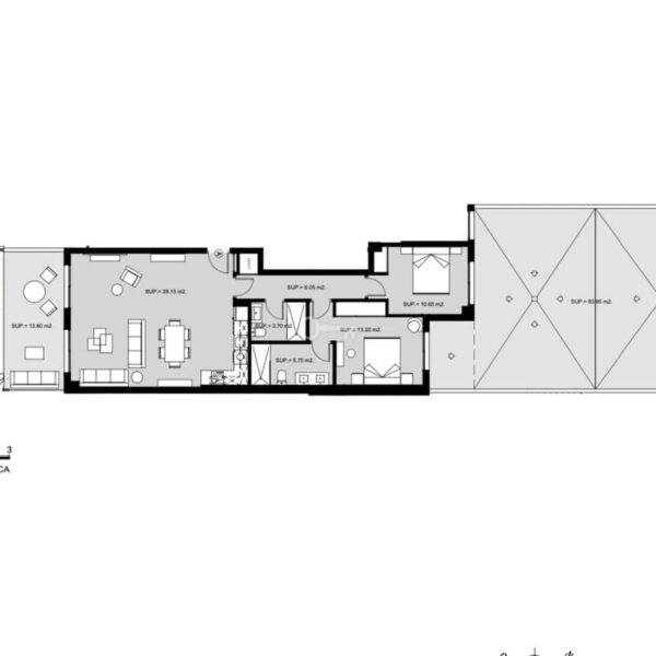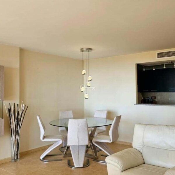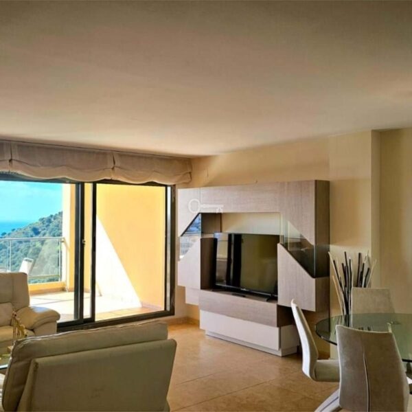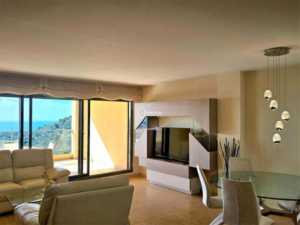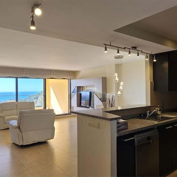 The property features a generously proportioned living-dining room that is both well-lit and airy, with a fully fitted, semi-open-plan kitchen integrated into the space. This living room opens onto a south-facing terrace, offering stunning views of the sea and the surrounding area. Moreover, the property’s three bedrooms are comfortable and well-lit, with built-in wardrobes. The two bathrooms are fully fitted and feature top-quality finishes. Also, the flat includes a storage room, a laundry area and a garage with space for two small cars.
