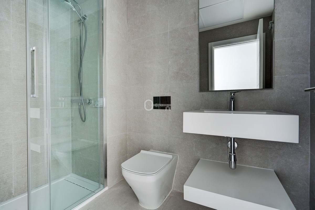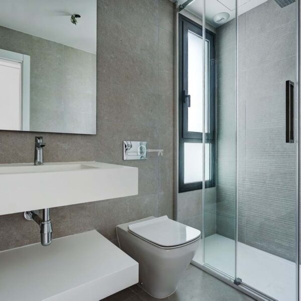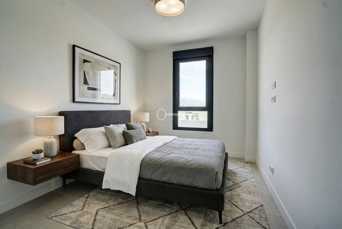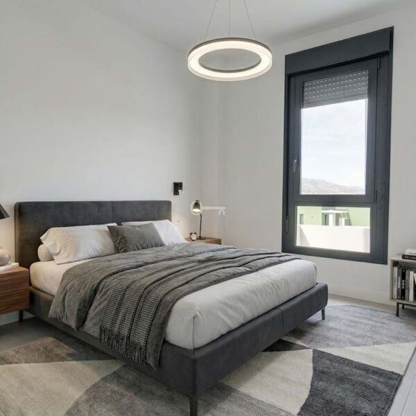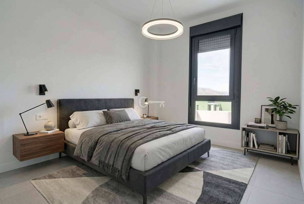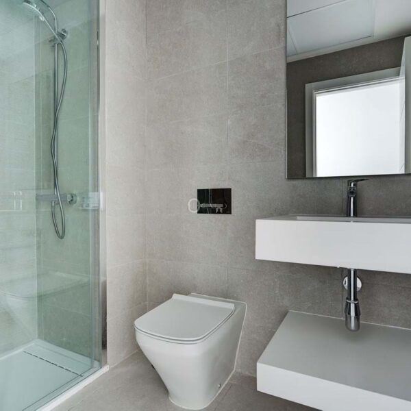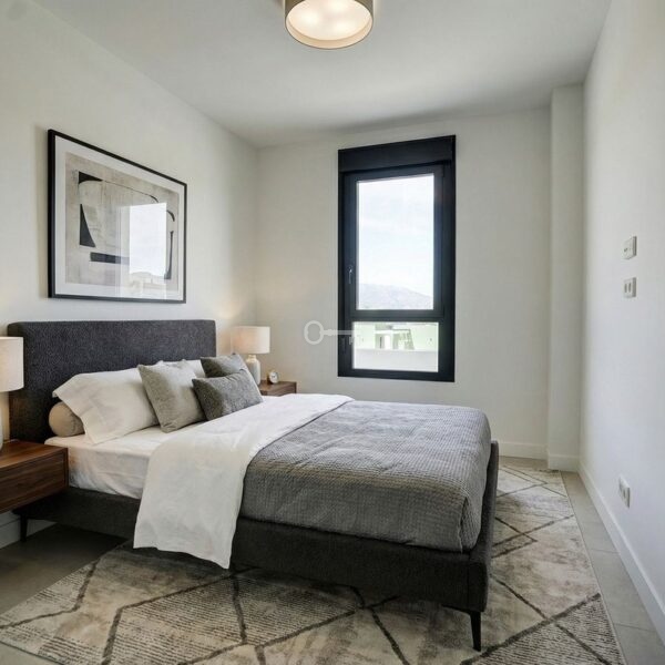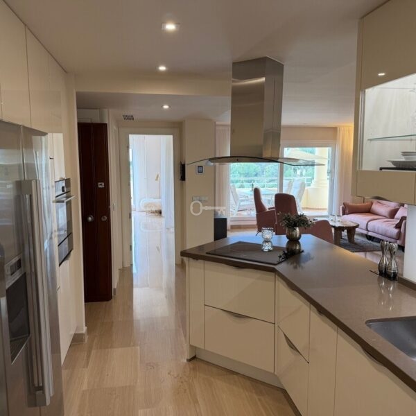 Inside, the property offers a bright, modern open-plan design with a spacious living area and a fully fitted kitchen complete with high-quality appliances. Large sliding doors connect the interior seamlessly with the terrace, maximising natural light and indoor-outdoor living. The master bedroom features an en-suite bathroom and direct access to the terrace, while all bedrooms include fitted wardrobes and elegant finishes such as large-format porcelain flooring. The apartment also benefits from two full bathrooms and an efficient hot and cold air conditioning system.