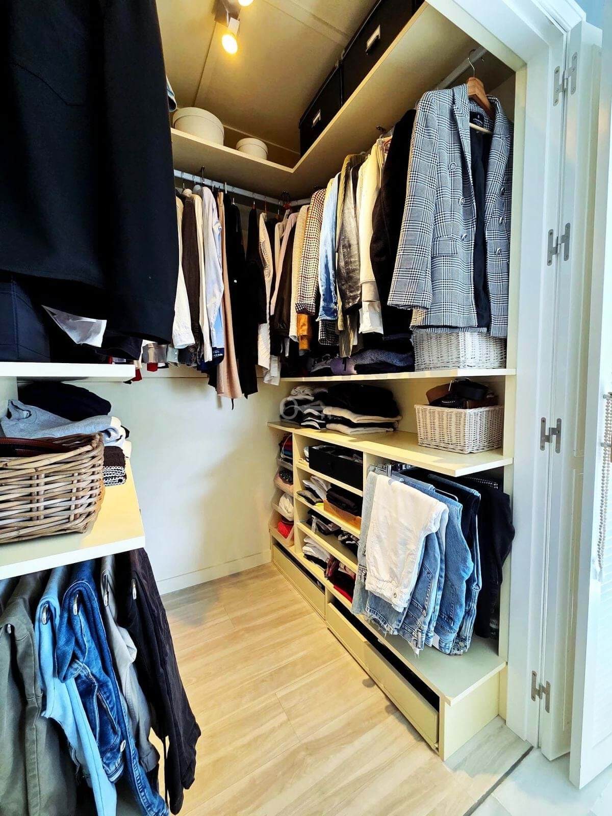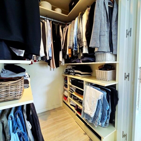 It has a parking space and storage room.