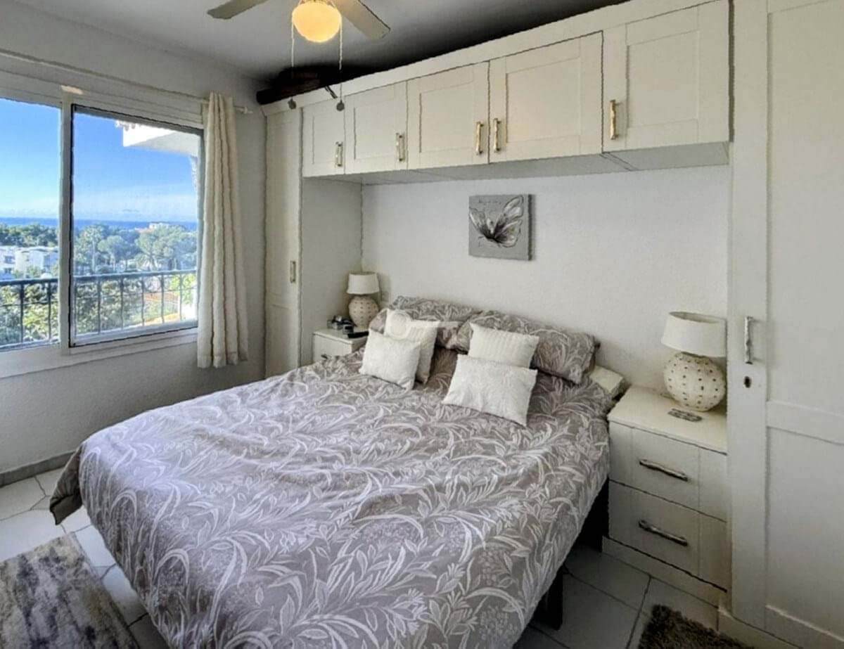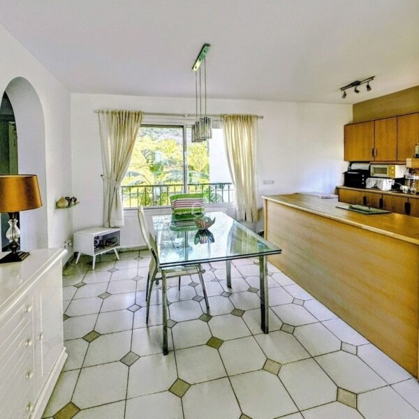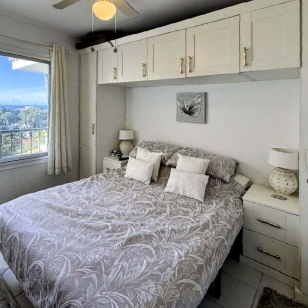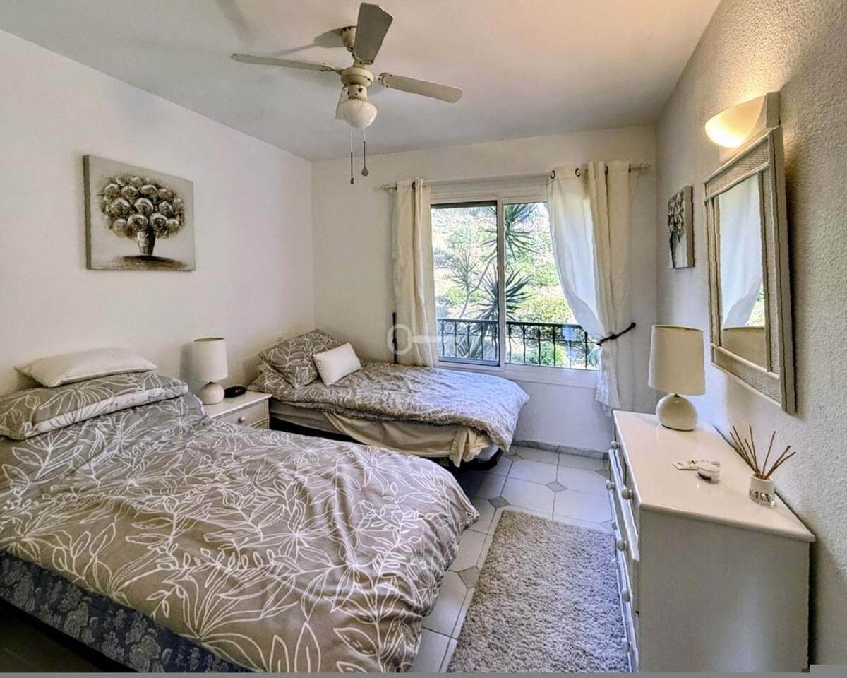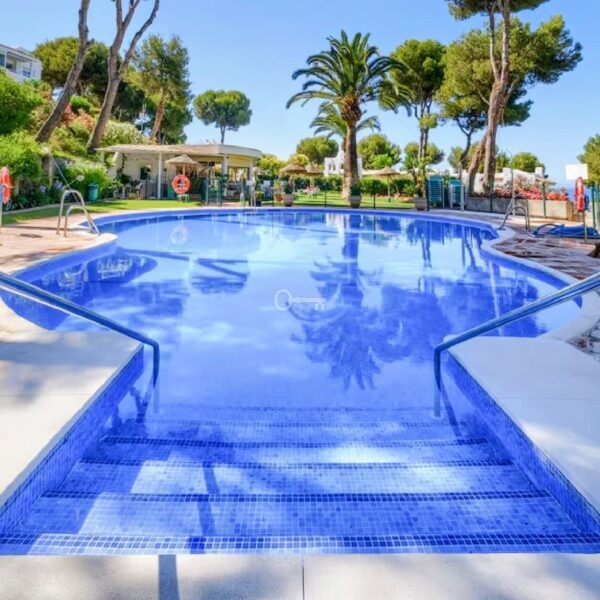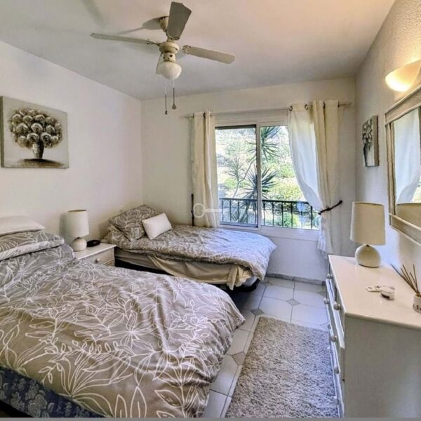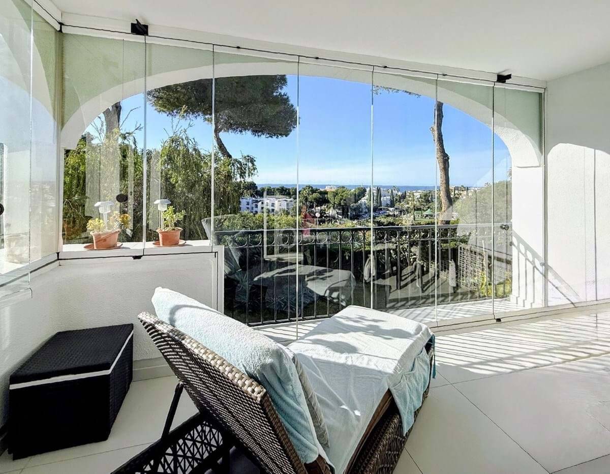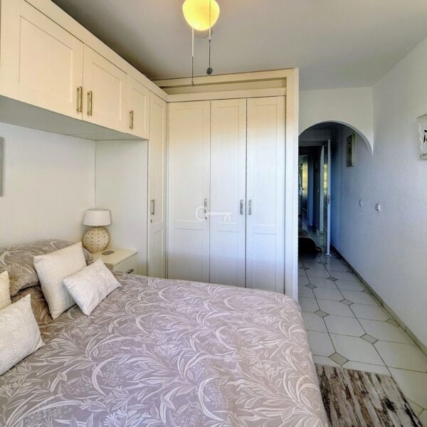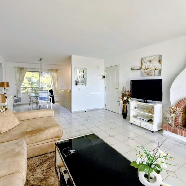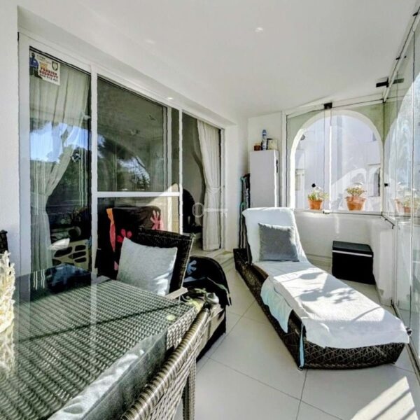 One of the best apartments in Miraflores Jardin B!! Short-term rentals are allowed too! Located just to the side of the fabulous tennis club and lawn bowling greens, with full sea views too, this amazing property is just a dream. The property comprises a large lounge/dining room, a modern, fully fitted, partially open-plan kitchen, 2 double bedrooms with fitted wardrobes, and 2 newly refurbished luxury bathrooms. The wonderful terrace is spacious enough for sunbathing and dining and has the benefit of glass curtains, enabling all-weather use. The apartment is sold with all its lovely furniture too!