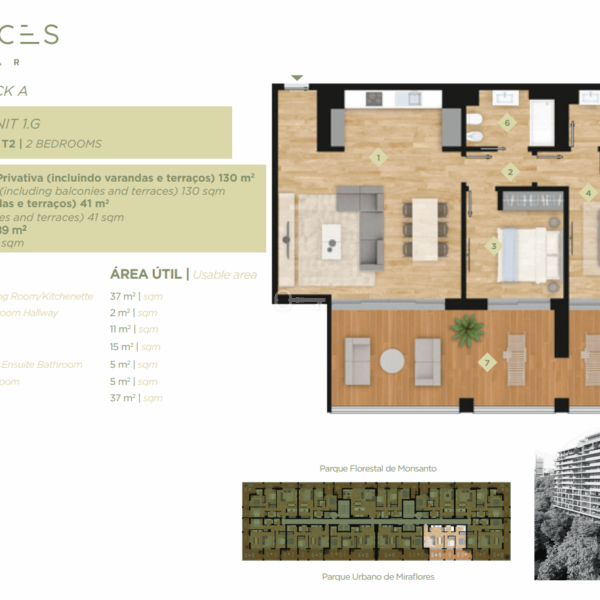 Welcome to TERRACES MIREAR, where balance reaches a higher level. A unique space, in perfect harmony between the green of Monsanto and the blue of the Tagus, between the quality of the exterior architecture and the sophisticated interior design, between accessibility and sustainability.