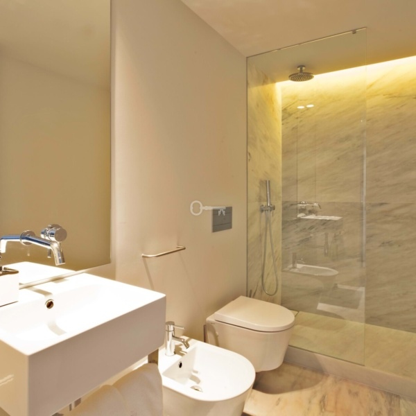 3-bedroom apartment, with 138 sqm (gross private area), in the 8 Building development, located in Praça D Luís I, in Santos, Lisbon. Comprises a 40 sqm living room with a fully equipped American kitchen, two 20 sqm bedrooms, a 15 sqm bedroom, two 7 and 5 sqm bathrooms, and a 9 sqm social area.Ideal for investment in Airbnb or for own housing. Car park with monthly parking agreement in front of the building.Located in the old and iconic Palácio dos Correios, dating from 1950 and turned into a modern apartment building, the project preserved its old characteristics such as the stone and the very large spaces. Its clock tower and façade reveal a building full of history, with unique views over the Tagus River. The apartment has been renovated to the highest standards of quality materials and finishes. Located near the famous “pink street” and 1-minute walking distance from TimeOut Market in Ribeira and the Tagus River. A short distance from places such as Bairro Alto, Chiado or Baixa. Whether walking, driving, by bus, metro or using the iconic Elevador da Bica – everything is near and waiting to be explored. Near one of the main transport terminals in the city, which includes the underground, trains, boats, buses, and trams – the Cais do Sodré station. 15-minute driving distance from Lisbon Humberto Delgado airport.