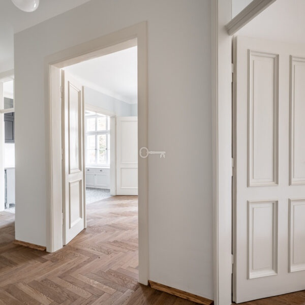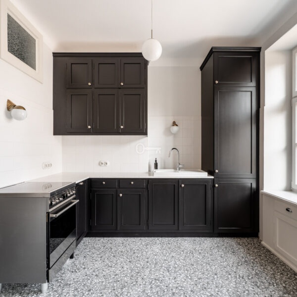 The heart of the home is a spacious living room with direct access to the terrace, which serves as a natural extension of the relaxation area. Residents have three versatile rooms at their disposal, which can easily function as bedrooms or home offices. The apartment is complemented by a fully equipped, bright kitchen and an elegant bathroom, finished with the highest-quality materials in a classic style.