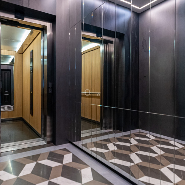 We can reach the apartment by a lift. Only the owners of the apartment can reach apartment`s level. For decorative purposes and a greater sense of security, the vestibule was fenced off with an entrance, double-leaf, decorative anti-burglary door, all decorated with mirrors.