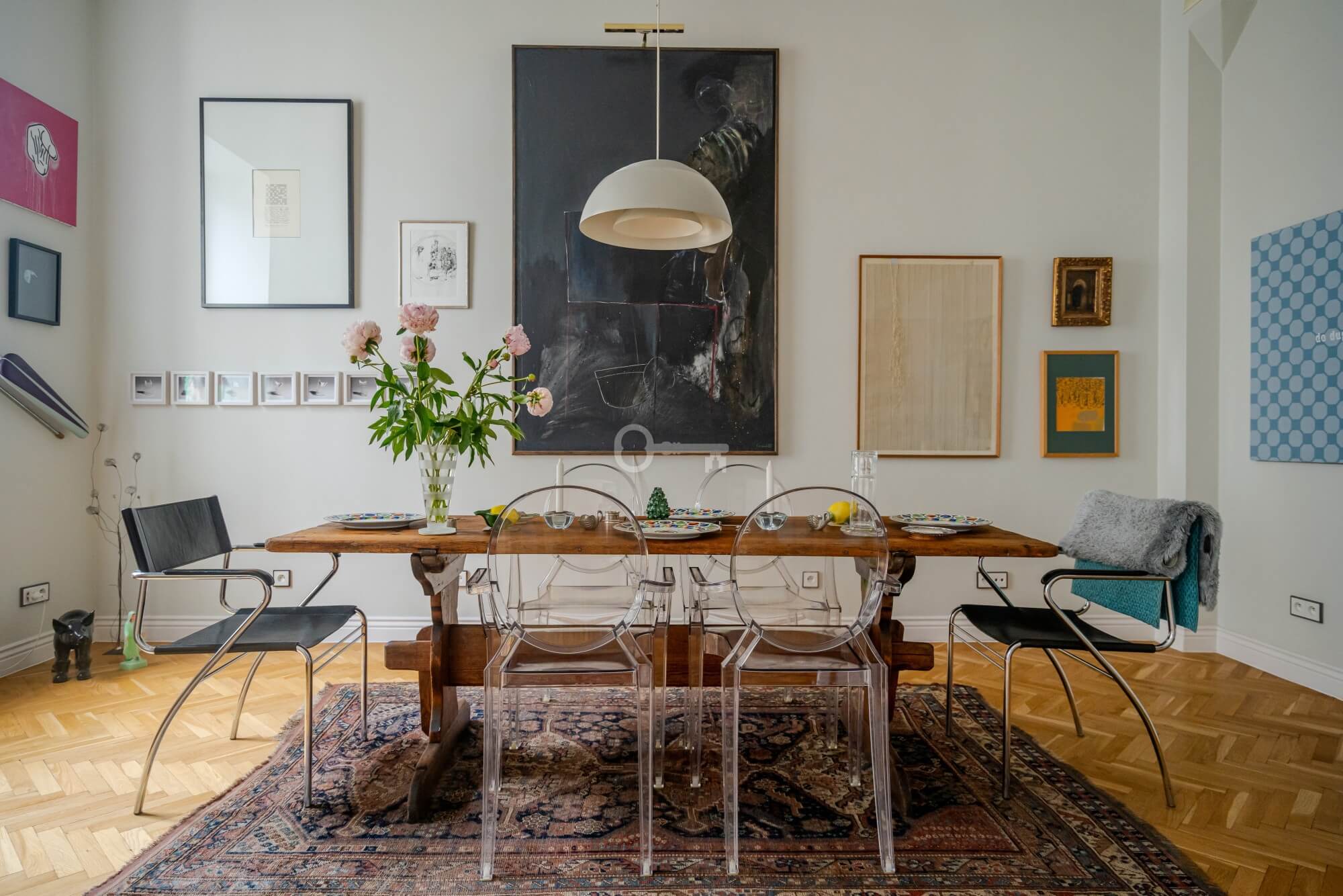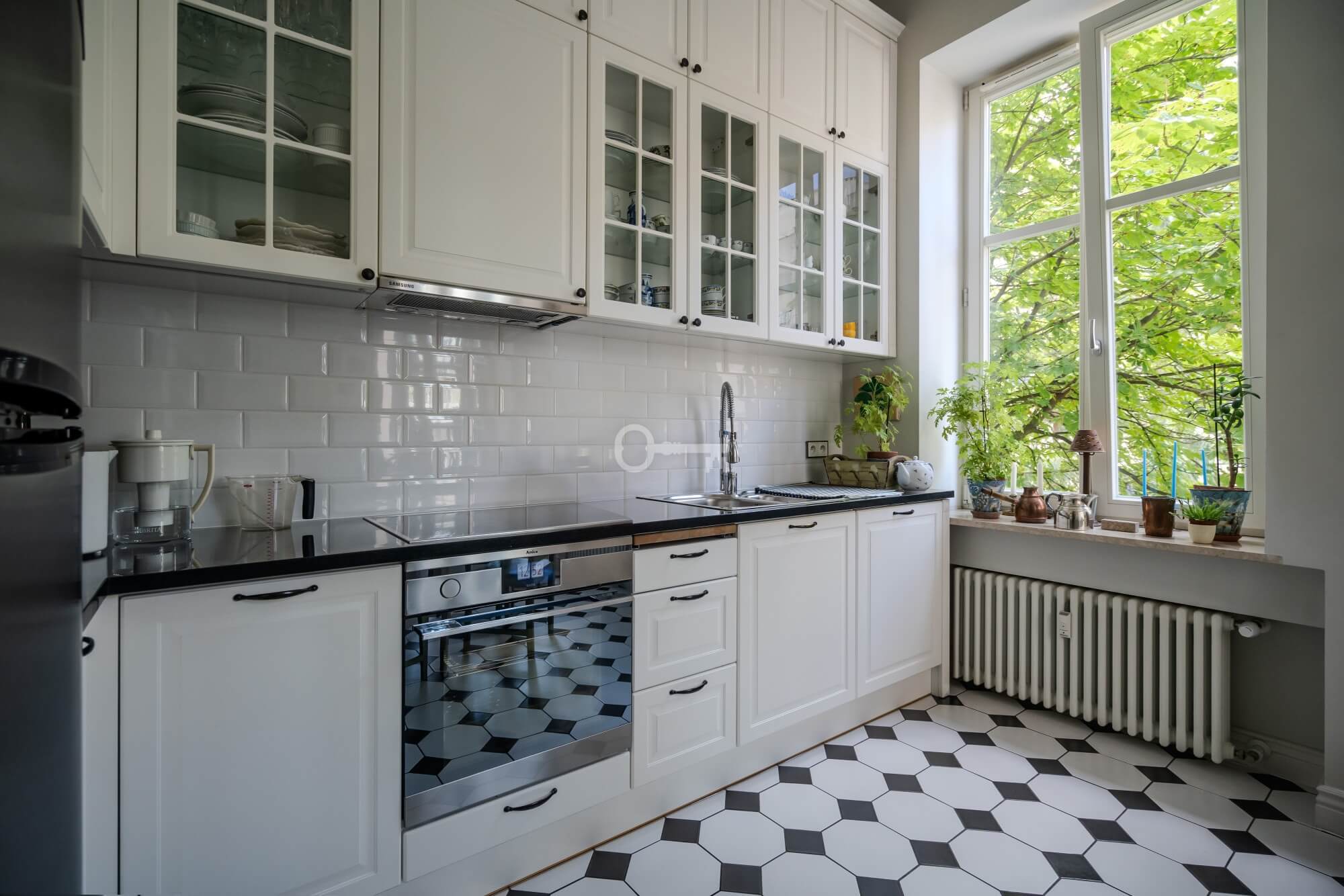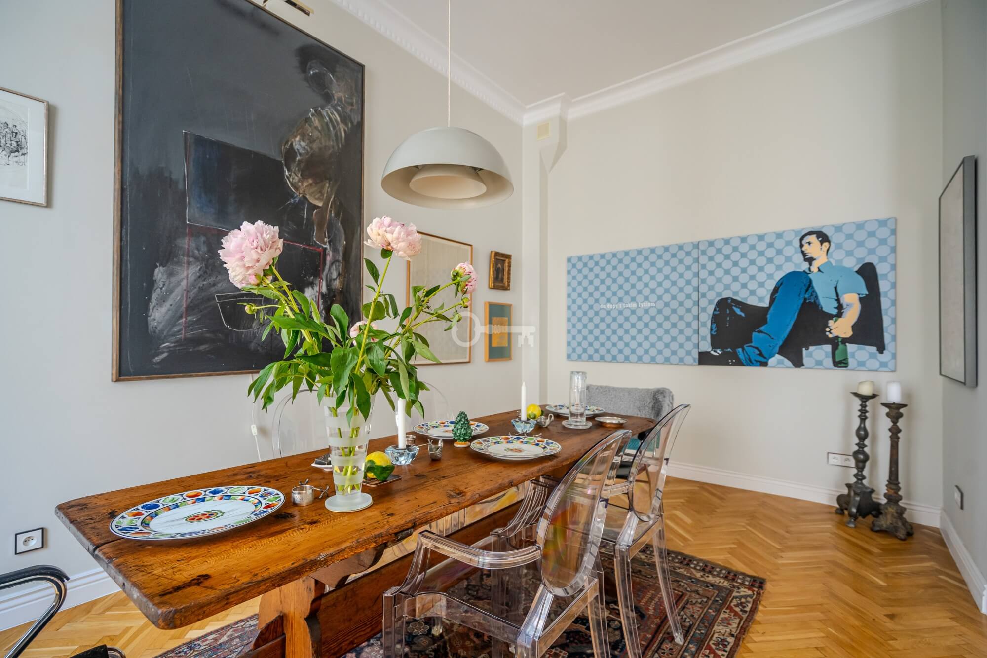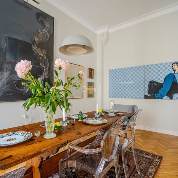 The apartment impresses from the very threshold – height (342 cm), large living room with beautiful double doors leading to the dining room. The balcony with a beautiful, decorative balustrade and large windows let in plenty of light.
